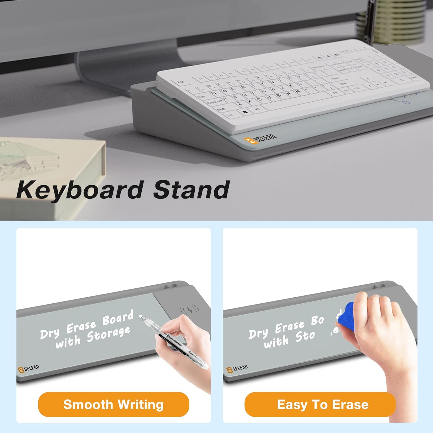 SELEAD Desktop Glass Whiteboard with Wireless Charger Station, Dry Erase White Board Computer Pad Keyboard Stand with Organizer for Home, School, Office Desk Accessories, Gray