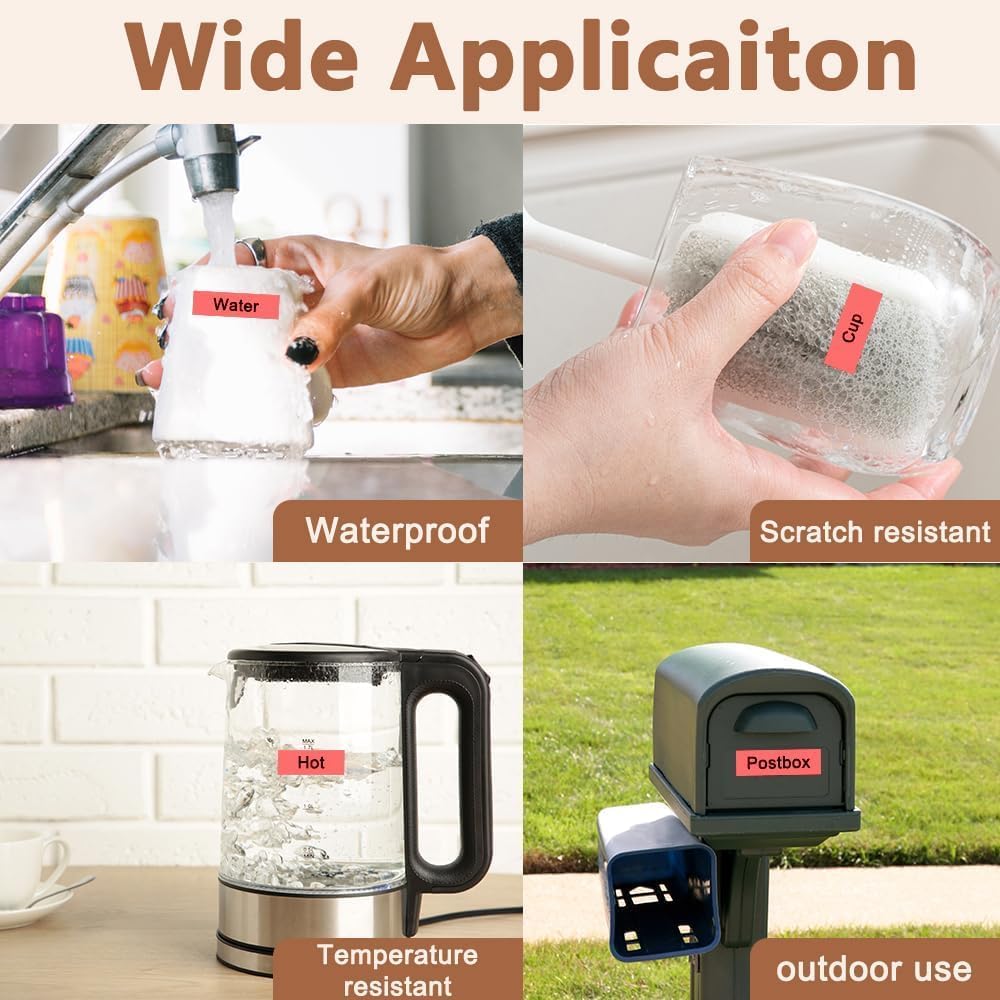 - Product features : Split back, water resistant, fading resistant, abrasion resistant, temperature resistant, strong adhesive. This compatibel 12mm tze-431 Black on Red label tape is suitable for indoor and outdoor use