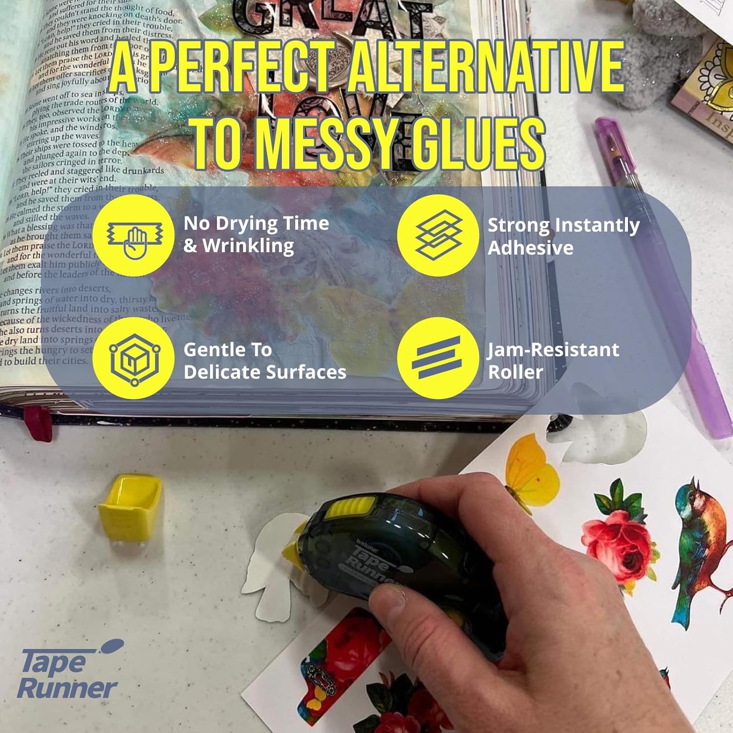 Tape Runner - Double Sided Adhesive with Dispenser Roller Included - Acid Free, Sticky, Clear & Transparent - Ideal for Scrapbooking, Crafts & More - Boomerang (417 inches per Cartridge), 20 Cartridge