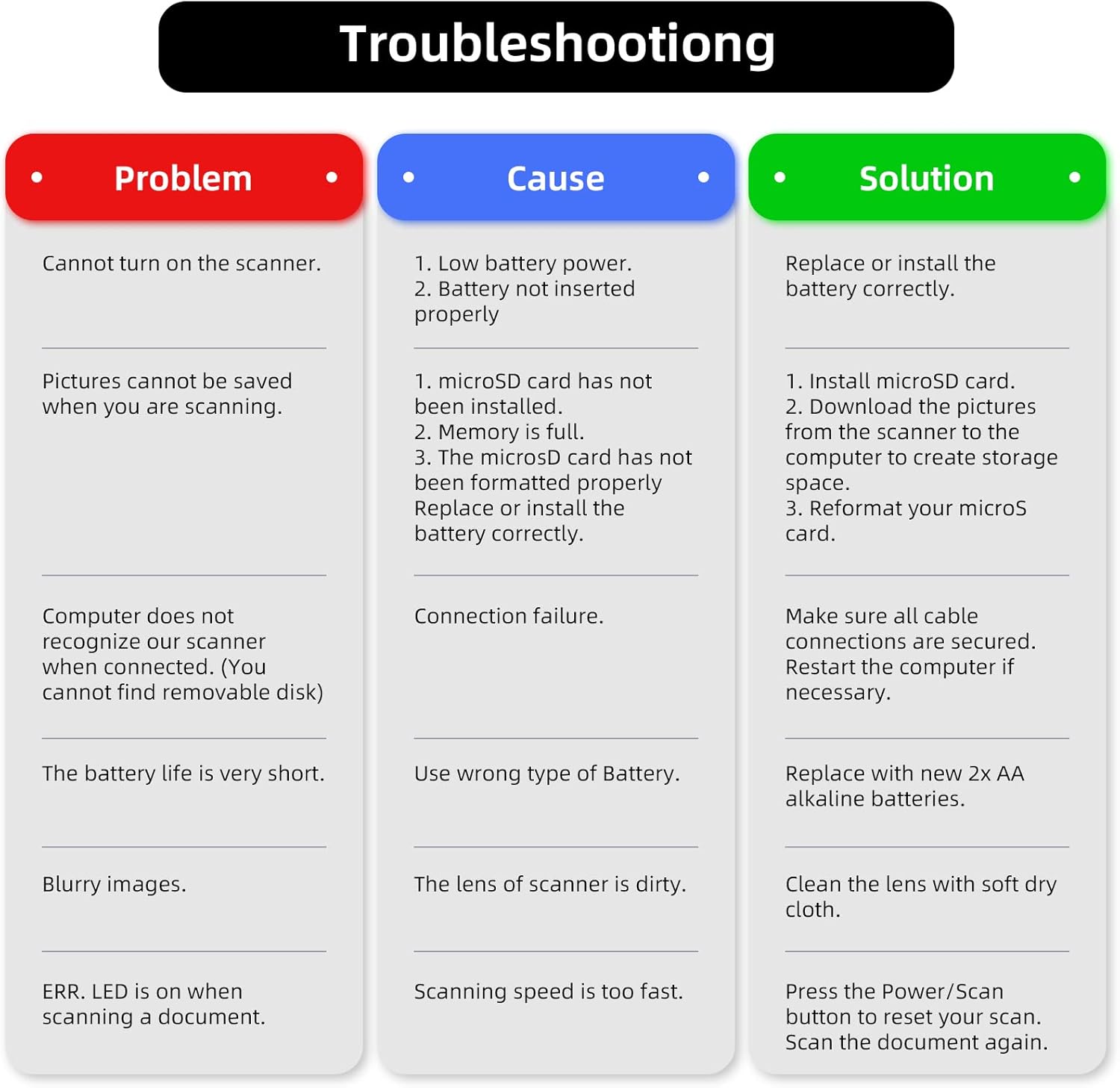 - Note: No software installation is required. You need 2 AA batteries ( not included) and a memory card ( included) to use it directly. Scan mode: Press and hold "Scan" for 2 seconds to turn on the device, and then press "Scan", the green light is on. The scanner moves to scan the file until the green light turns off automatically (or press the "Scan" key and the green light goes out). The number shown on the display increases by 1 to indicate that the scan is complete.