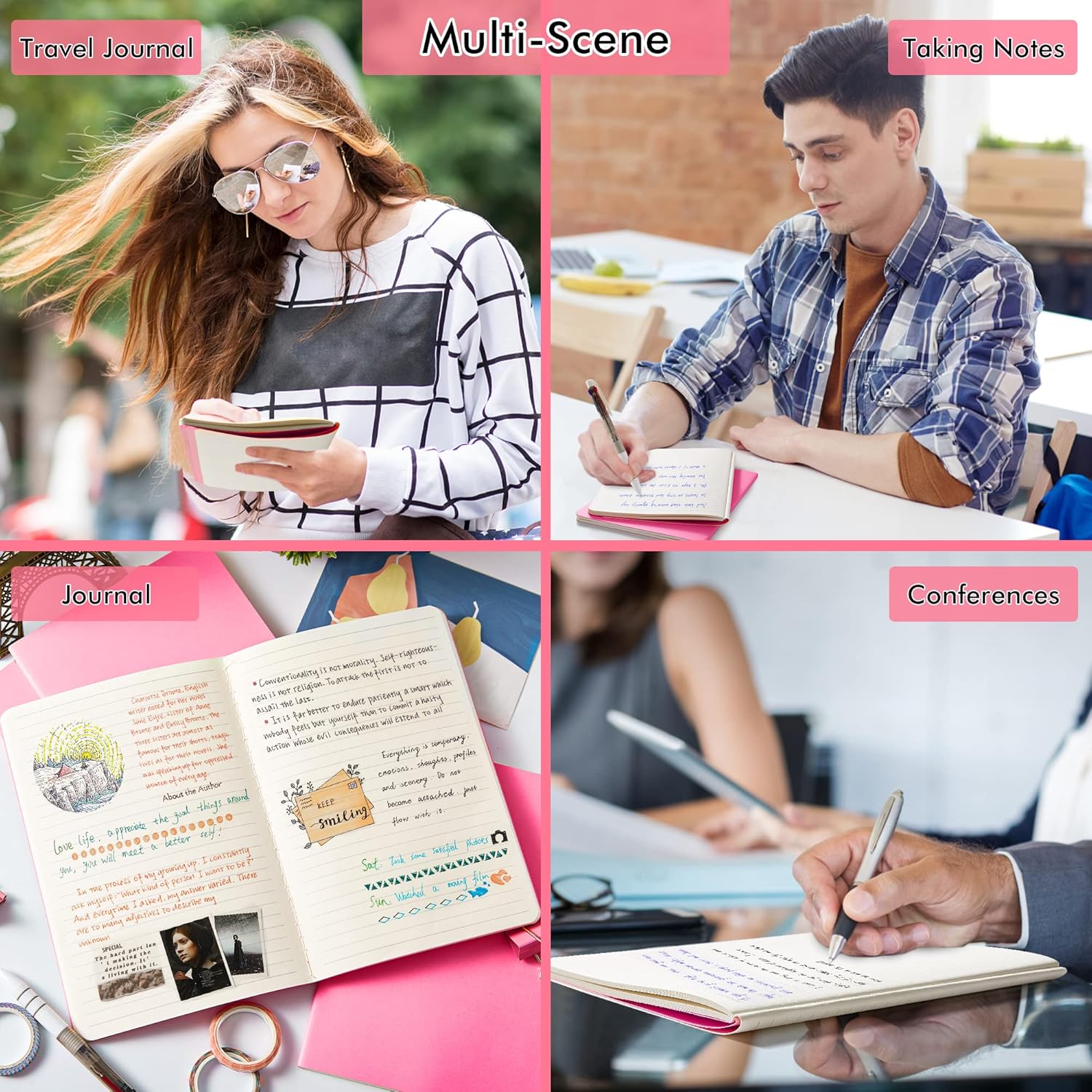 - These travel journals bulk for women have 92 blank lined pages (46 sheets), which would be sufficient for daily usage. The note taking notebooks have a smooth cover, round corners and tight stitching, which are designed to lay 180° flat. Some quick notes can help you remember important dates and find the page you want in a very short time.