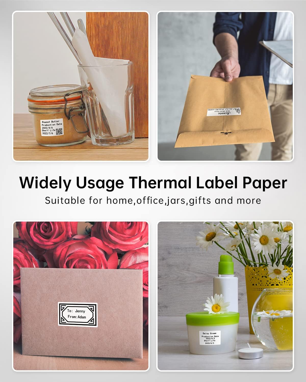 - Wide Application - The thermal labels can be used for variety purpose,including jars labels, size labels,thank you sticker, gift labels, name labels, address labels, reminder tags, classification labels,barcode,QR code printer labels and more labeling, ideal for home storage, office work, school etc