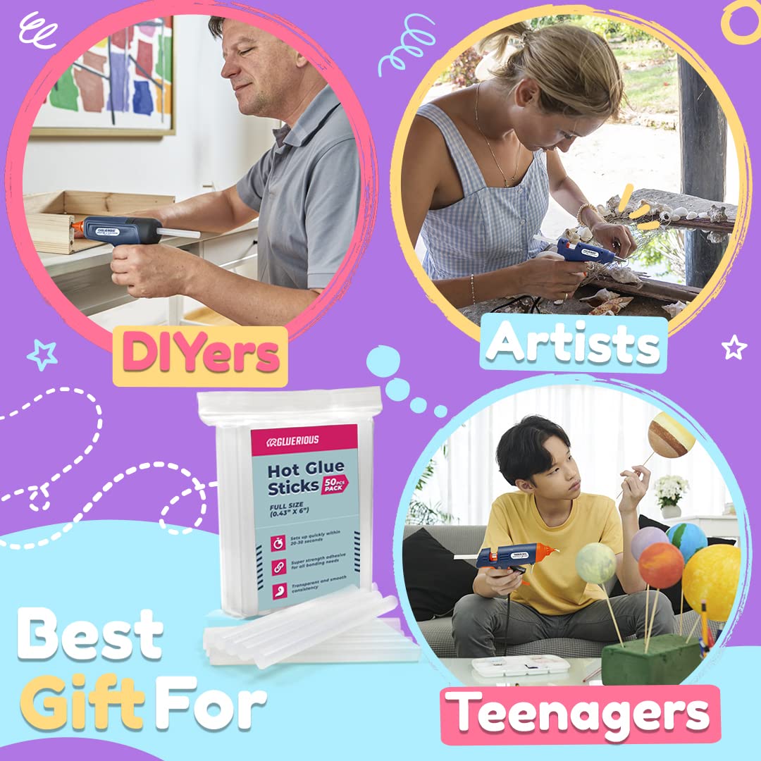- The Right-Sized Glue Sticks For Your Glue Gun: Finding the right size glue stick can be tricky. Our full-sized hot glue sticks are ideal for larger glue guns. Both parents and children can enjoy the best crafting experience with these.