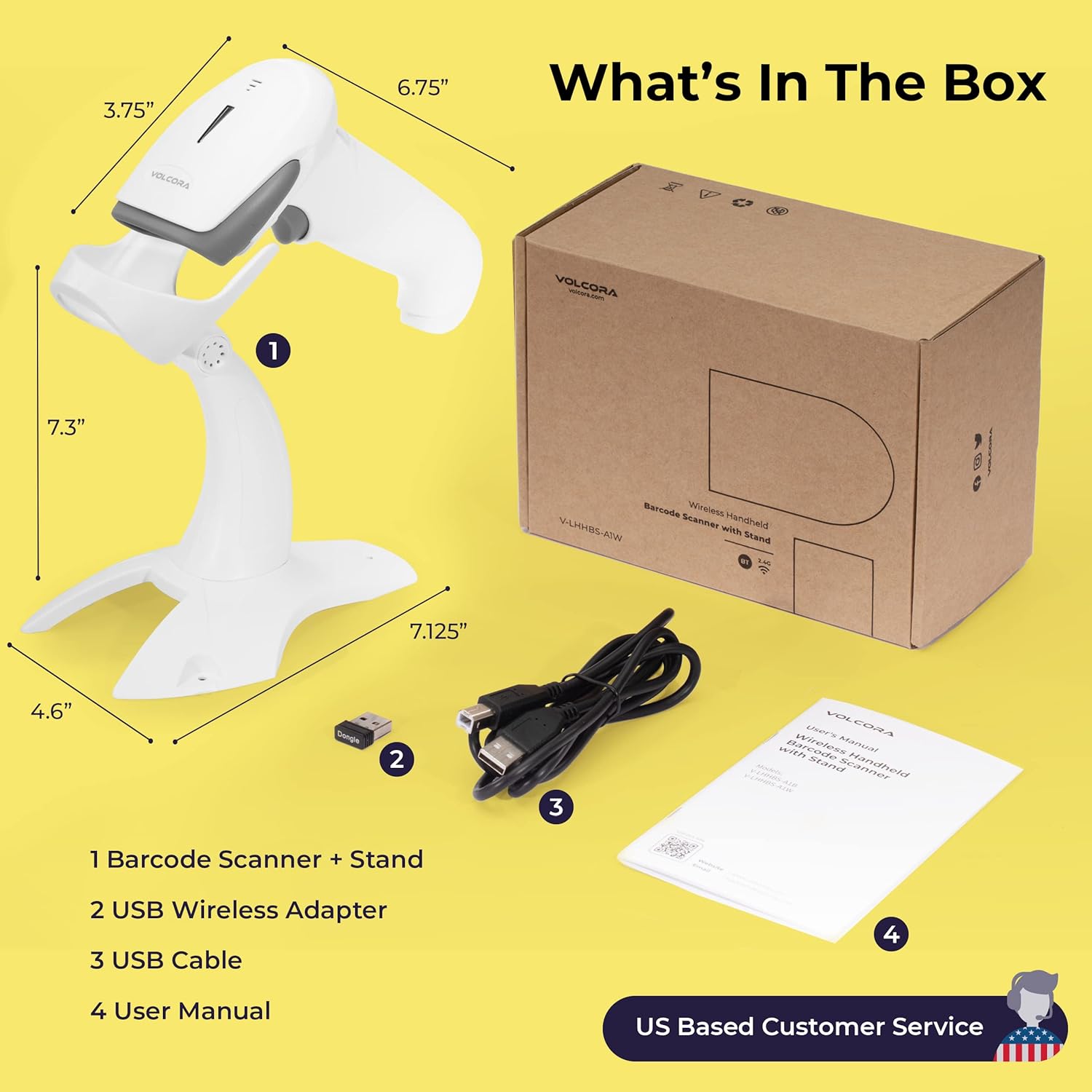 Volcora Wireless Bluetooth Barcode Scanner, QR Code Scanner, USB Portable Handheld Scanners w/Stand Connect w/Tablet/Phone/PC, 1D & 2D Inventory Scanner, Symbol Barcode Scanner for Retail & Warehouse