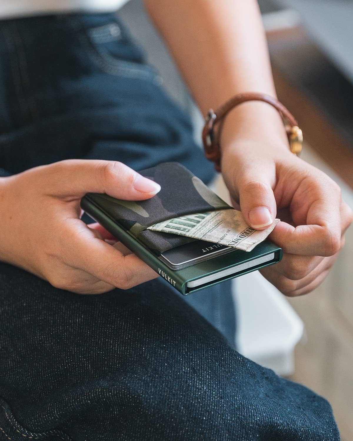 VULKIT Card Holder with Money Pocket Pop Up Wallet RFID Blocking Slim Metal Bank Card Case Holds 5 Cards and Notes