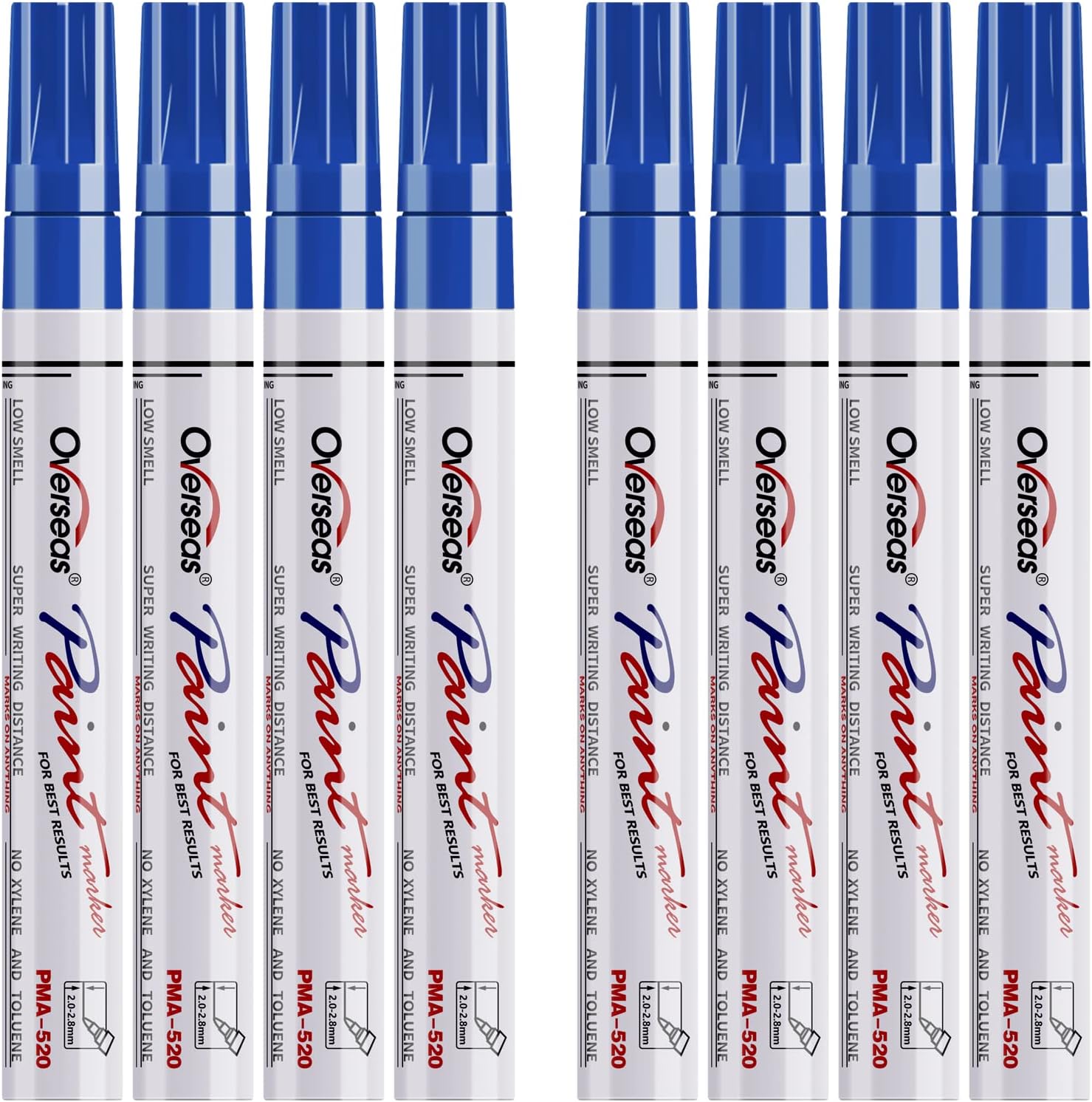 Paint Pens Paint Markers - Blue Permanent Markers 8 Pack, Oil Based Waterproof Quick Dry Medium Tip Marker Pen for Metal, Wood, Fabric, Plastic, Rock, Stone, Mugs, Canvas, Glass, Art Craft