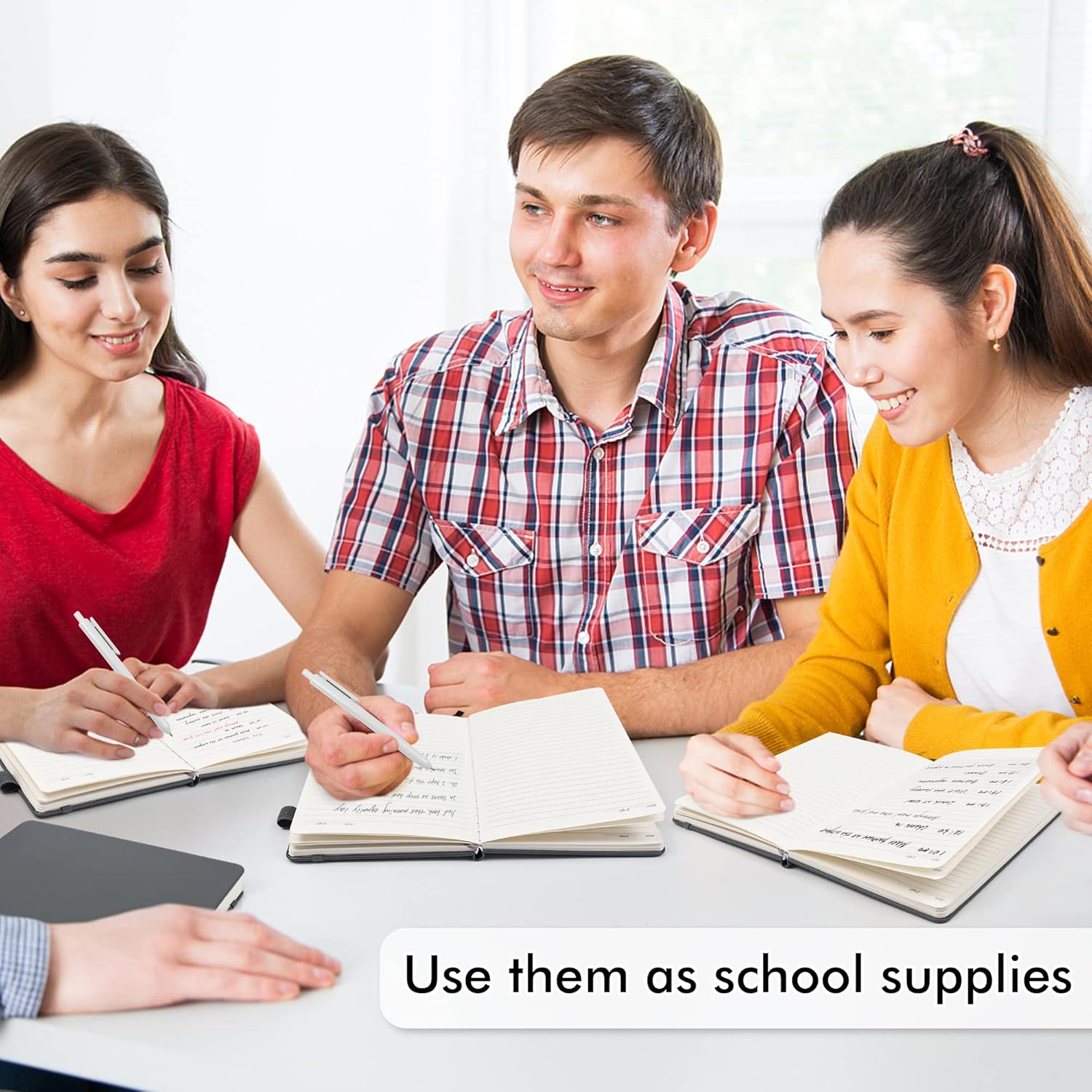 - Feela 8 Pack Classic Ruled Notebooks contains 8 gray ruled sturdy cover notebooks and 8 Black Retractable Pens. Each of the notebooks measures 8.3” x 5.1”, which is perfect to carry and easily held by young girls and boys. These black cute pens are customized to be placed in the pen holder, which is pretty convenient.