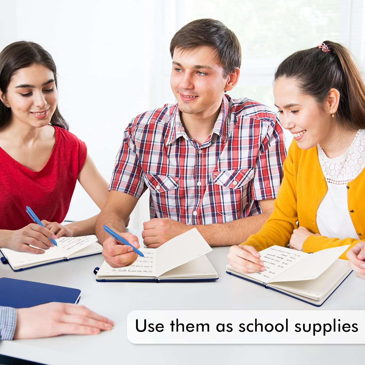- Feela 8 Pack Classic Ruled Notebooks contains 8 navy ruled sturdy cover notebooks and 8 Black Retractable Pens. Each of the notebooks measures 8.3” x 5.1”, which is perfect to carry and easily held by young girls and boys. These black cute pens are customized to be placed in the pen holder, which is pretty convenient.