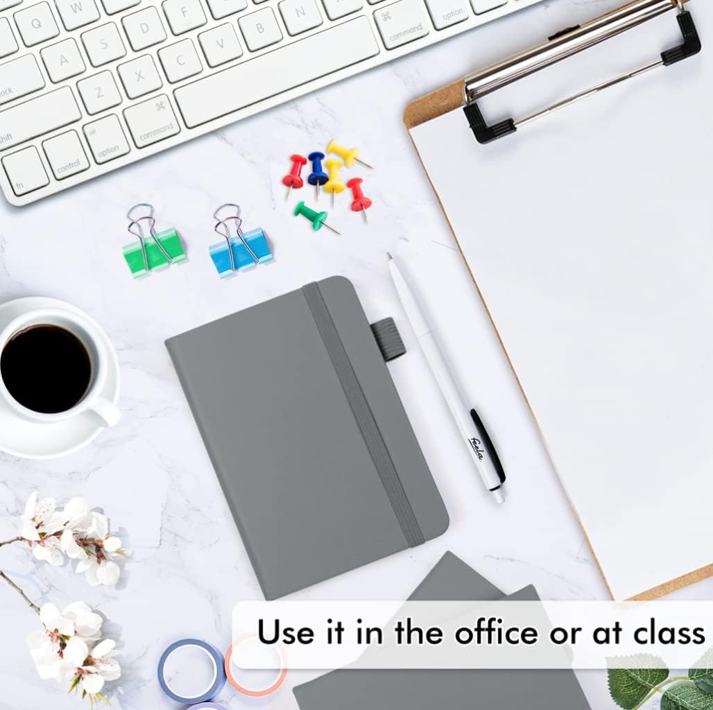 - Feela 15 Pack College Ruled Gray Notebooks contains 15 college ruled sturdy cover notebooks and 15 Black Retractable Pens. Each of the notebooks measures 3.5” x 5.5”, which is perfect to carry and easily held by young girls and boys. These black cute pens are customized to be placed in the pen holder, which is pretty convenient.