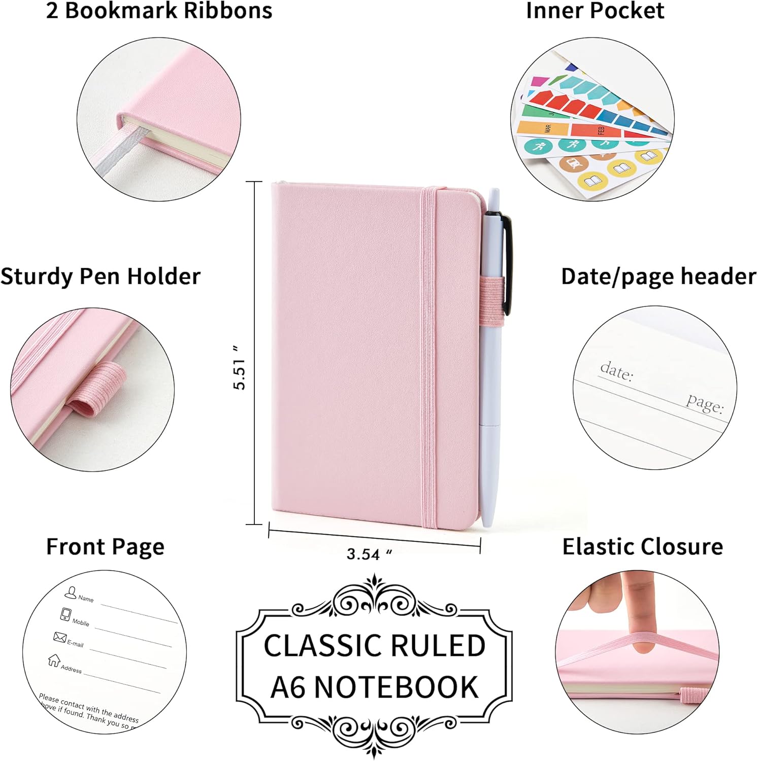 - Feela 15 Pack College Ruled Rose Pink Notebooks contains 15 college ruled sturdy cover notebooks and 15 Black Retractable Pens. Each of the notebooks measures 3.5” x 5.5”, which is perfect to carry and easily held by young girls and boys. These black cute pens are customized to be placed in the pen holder, which is pretty convenient.