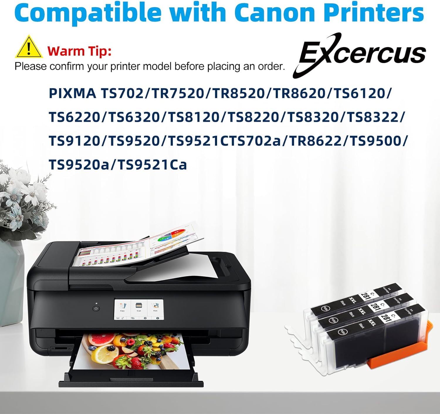 - 【100% Compatible Printers】EXCERCUS Canon CLI-281XXL cartridges 100% Compatible Canon PIXMA TS702 TS6120 TS6100 TS6220 TS6200 TS6320 TS8120 TS8100 TS8220 TS8200 TS8320 TS9120 TS9100 TS9520 TS9500 TS9521C TR7520 TR7500 TR8520 TR8500 TR8620 printers.