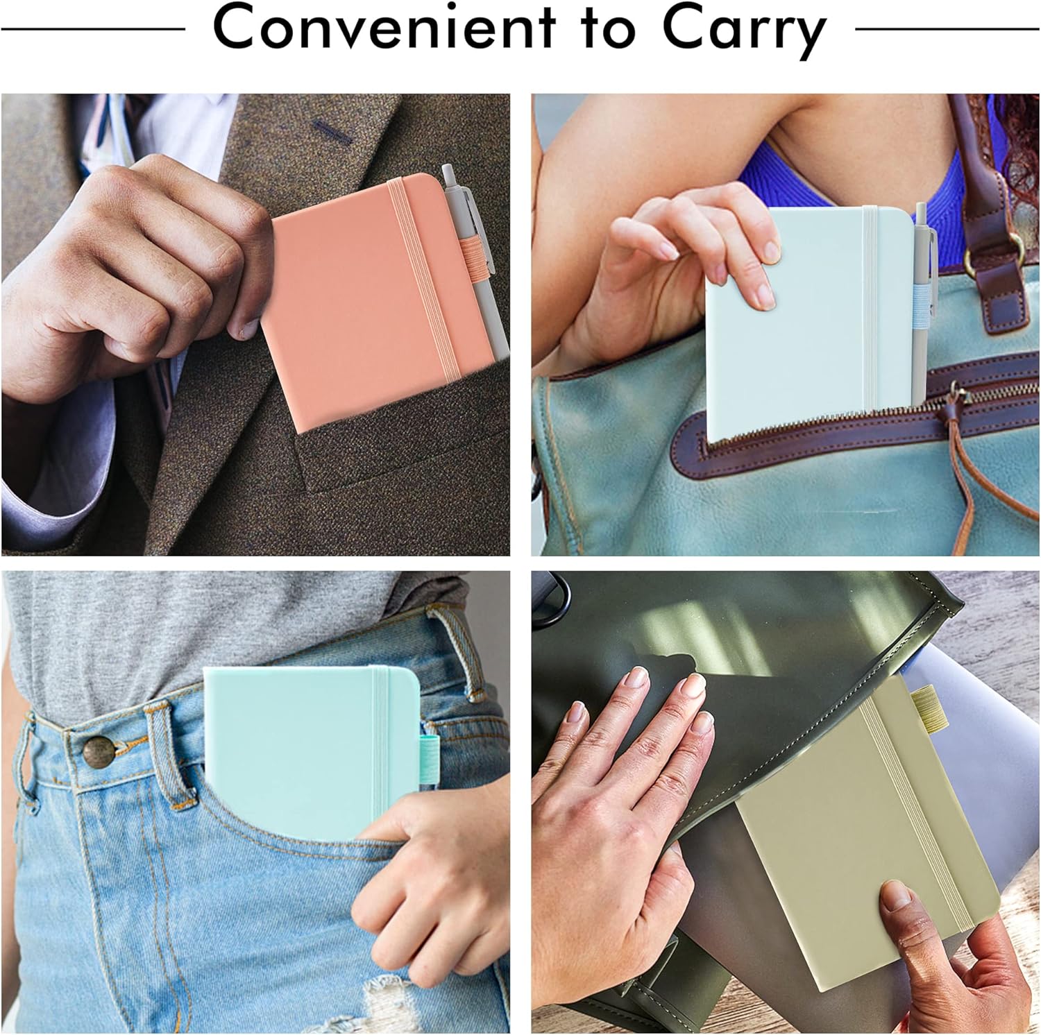 feela 6 Pack Pocket Small Notebooks Bulk, Mini Cute Memo Notepads Hardcover College Ruled Lined Journals with Pen Holder for Women Girls Office School, with 6 Black Pens, 3.5”x 5.5”, A6, Mild Colors