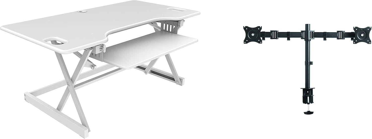 - STANDING DESK BUNDLE: Includes a 46" standing desk converter (R DADRW-46) and a Double Monitor Arm (R DM2).