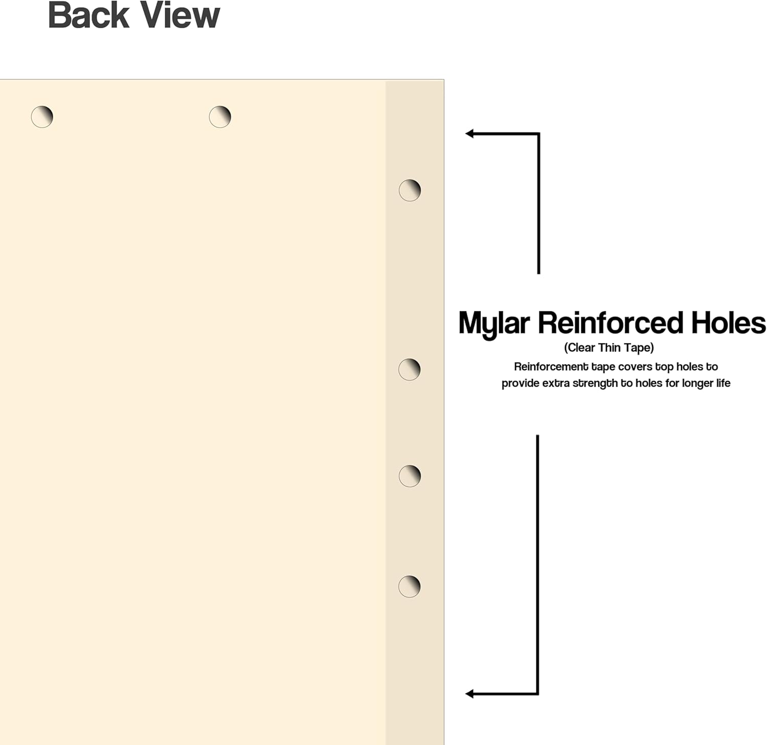 - SHEET: Each sheet is 8-1/2" x 11" with a 1-3/4" top flap extension with 2 holes to attach to a fastener. A 2" bonded fastener allows you to attach additional file backs. Contains 40 complete sets of 8 fileback sets.