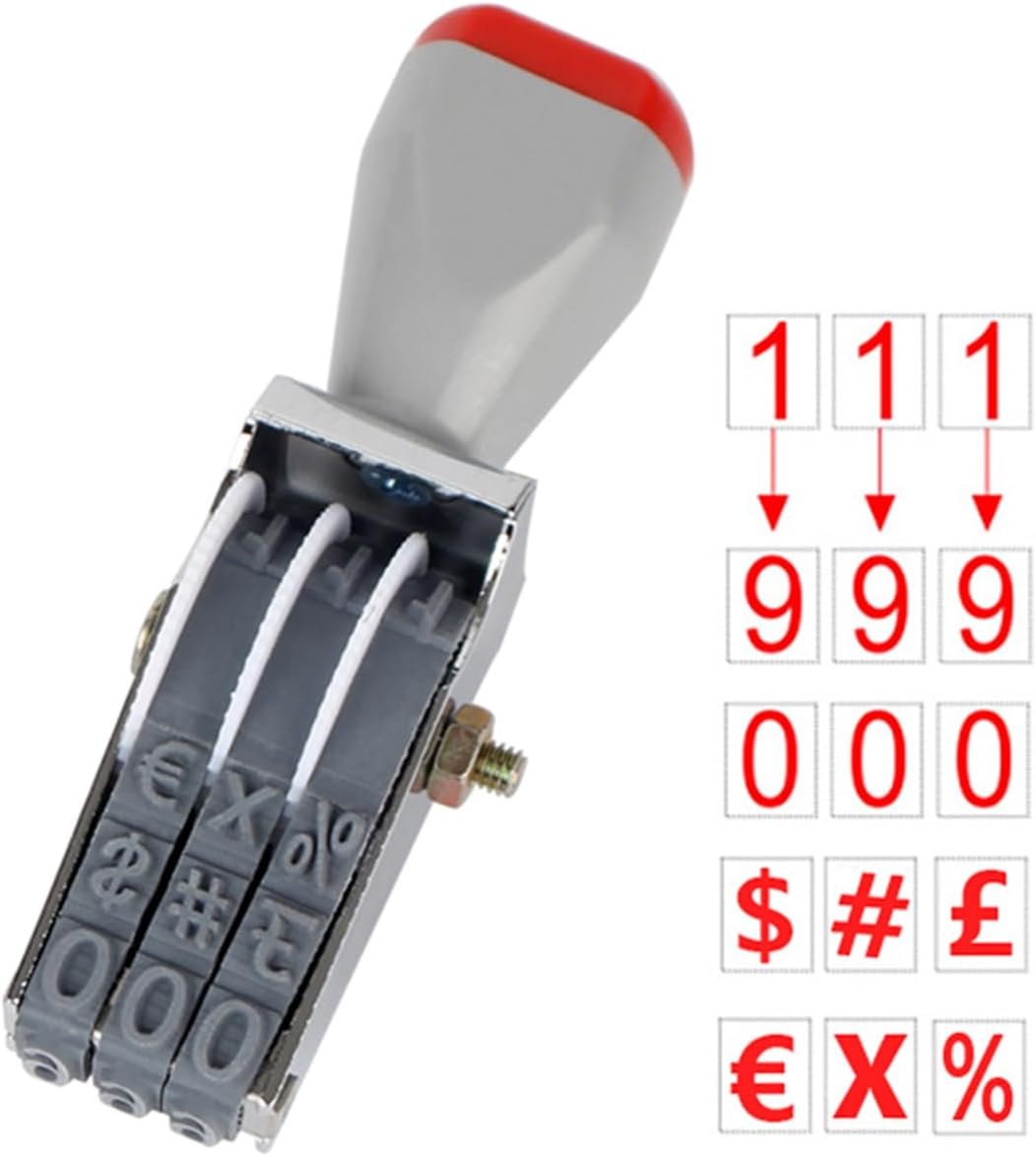 - Rolling Wheel Stamp Enough for Daylife Use -- Each belt contains ten Arabic numerals 0,1,2,3,4,5,6,7,8,9, and and Symbols, means you can choose the length of code from 1 to 3 according to your demand, each belt can be adjusted independently