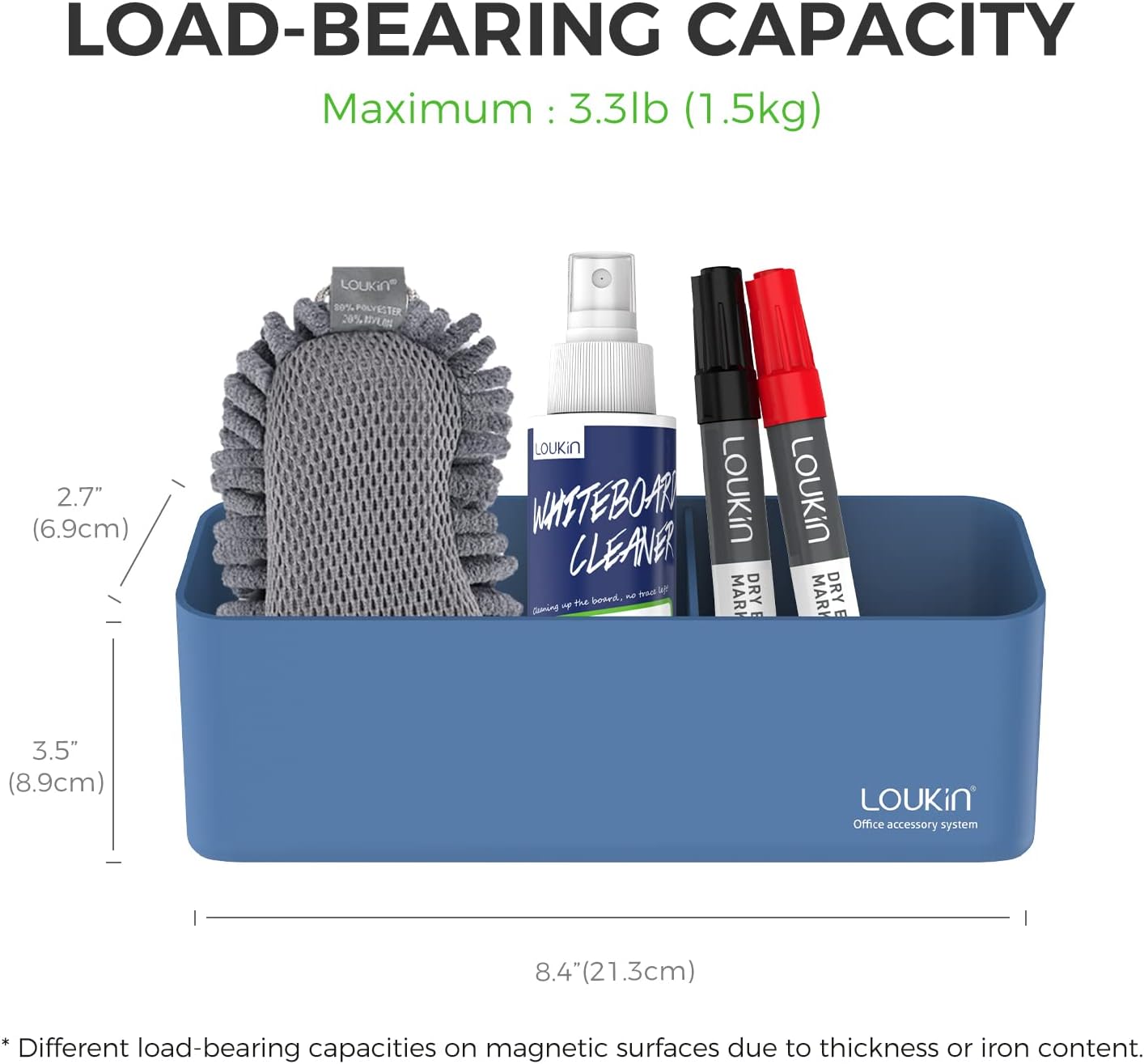 - SUPER LOAD BEARING: Secure magnetic storage organizer for whiteboards with a maximum loadbearing of capacity 3.3 lb (1.5 kg).