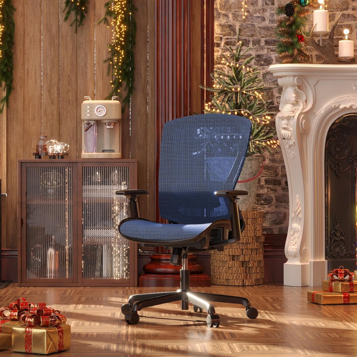 ELABEST Mesh Office Chair,Ergonomic Computer Desk Chair,Sturdy Task Chair- Adjustable Lumbar Support & Armrests,Tilt Function,Comfort Wide Seat,Swivel Home Office Chair (Blue)