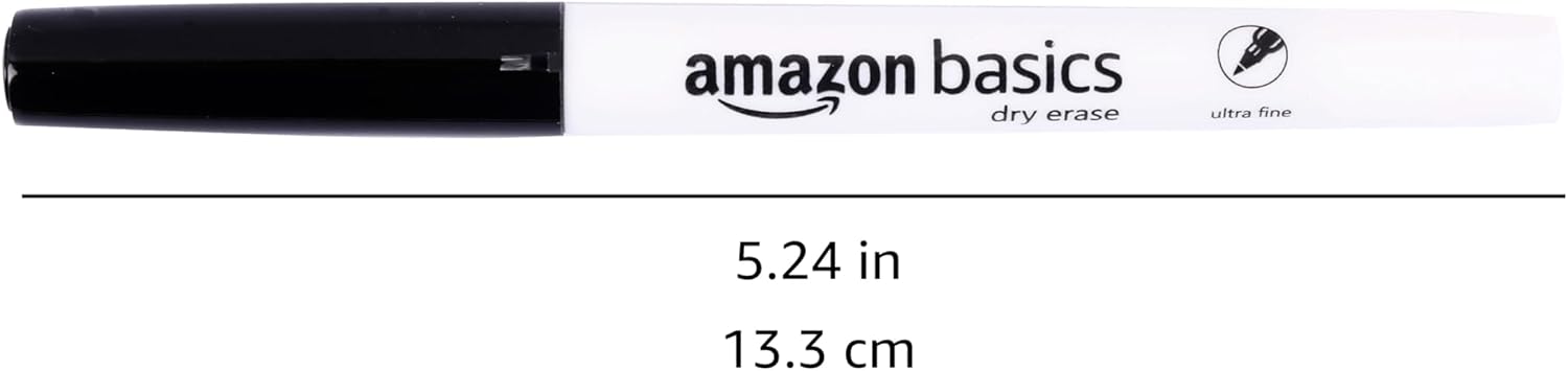 Amazon Basics Low Odor Ultra Fine Tip Dry Erase White Board Markers, Black, 12-Pack