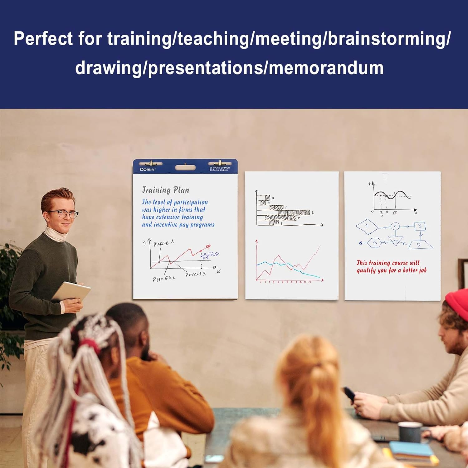 - 【Large Size Chart Paper】 Comix flip chart paper comes in a large size of 25 x 30 inches, 30 Sheets/Pad, 4 Pads/Pack, providing plenty of space for writing and drawing.