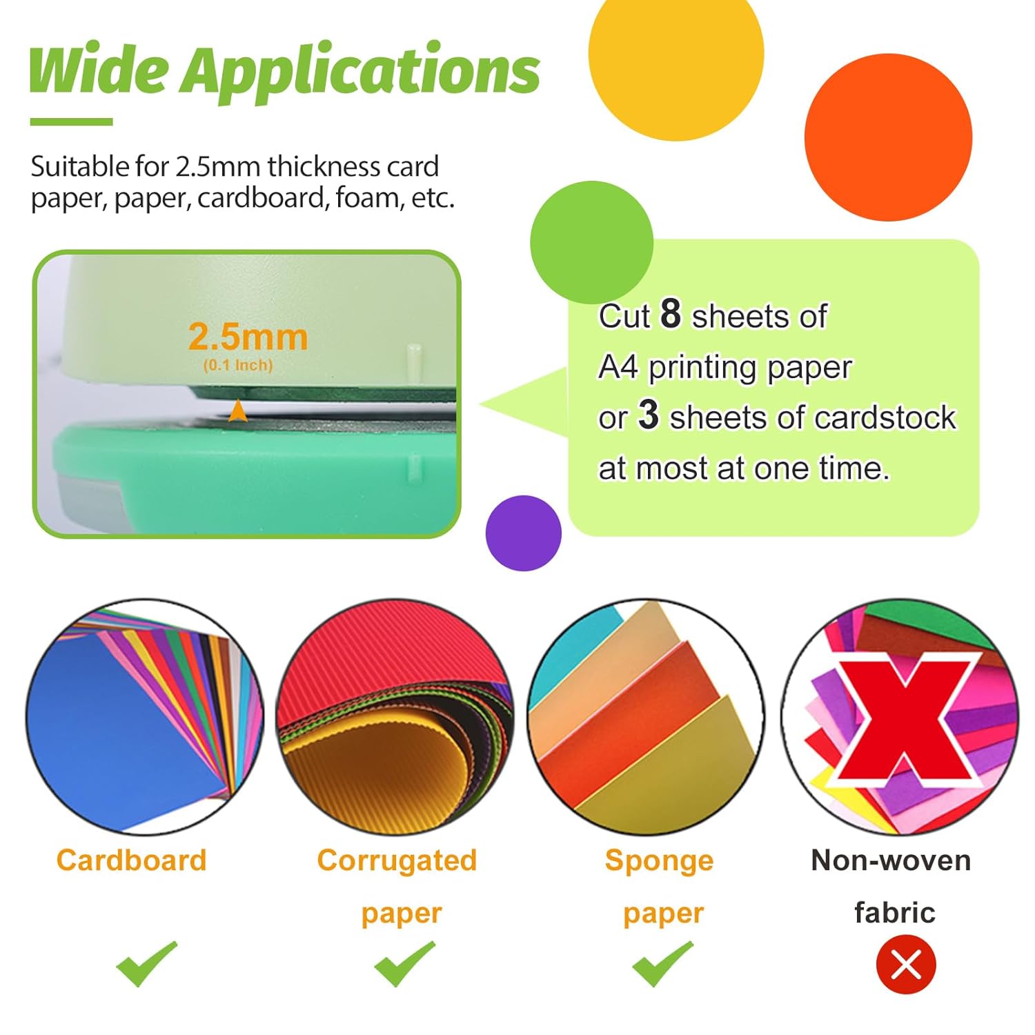- Wide Applications : Paper hole punch is simple to use and will make perfectly shaped designs from card-stock, paper, cardboard, felt, foam, etc. If your paper is too thin, please use 2-3 layers. Cutting Sticky paper may make the circle paper punch GET STUCK