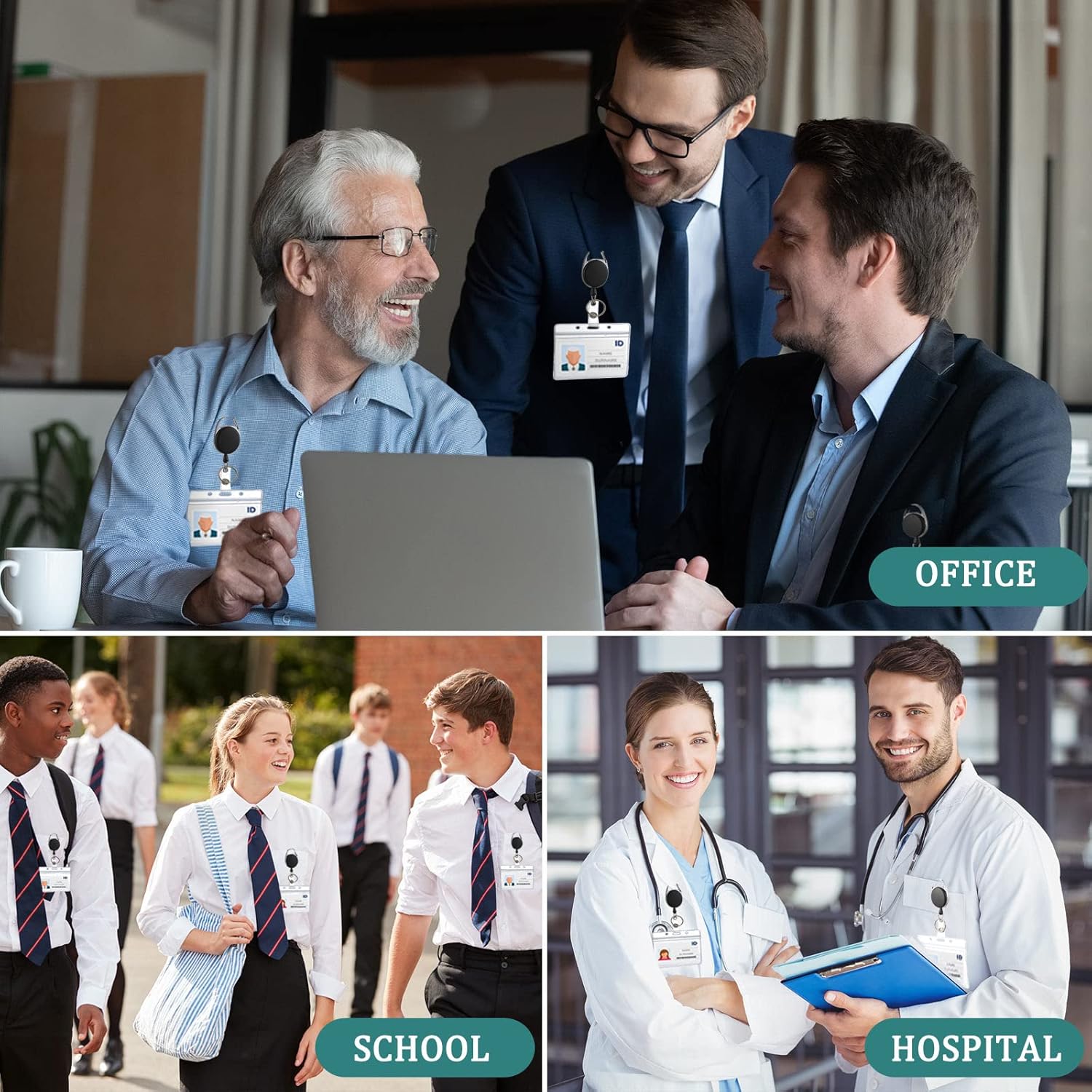 - Effortless to Use: retractable badge reels includes a spring clasp, plastic covers, retractable reel clip, stainless steel for a more secure connection way to ensure fasten to your belt loops, straps, backpacks, bags effortlessly and quickly