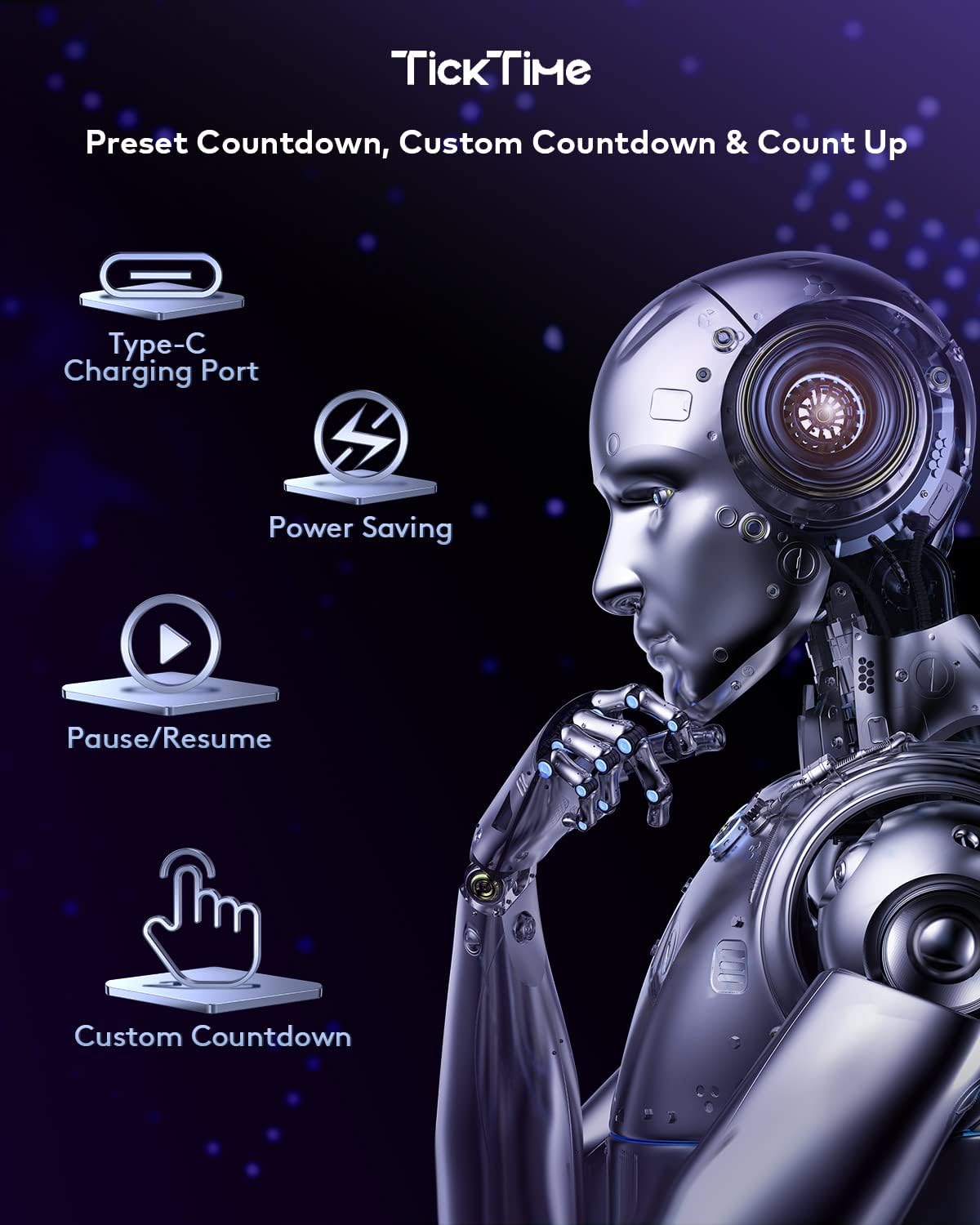 - Effortless Time Management: Ticktime pomodoro timer clock simplifies time management with 6 preset countdown times (5/15/25/30/45/60min) activated by a simple flip. You can also set custom countdowns with ease using just two buttons. Say goodbye to wasted minutes and boost your productivity like never before.