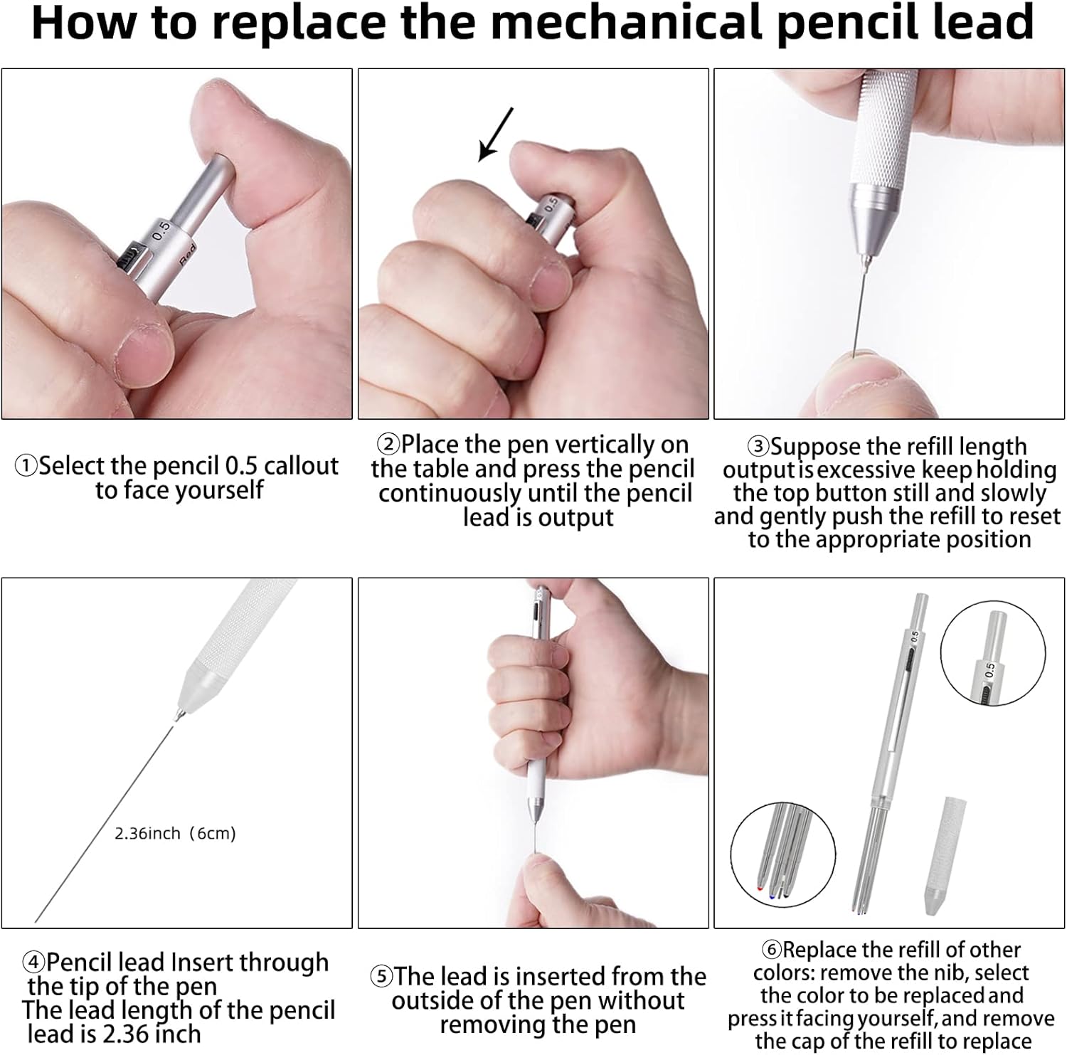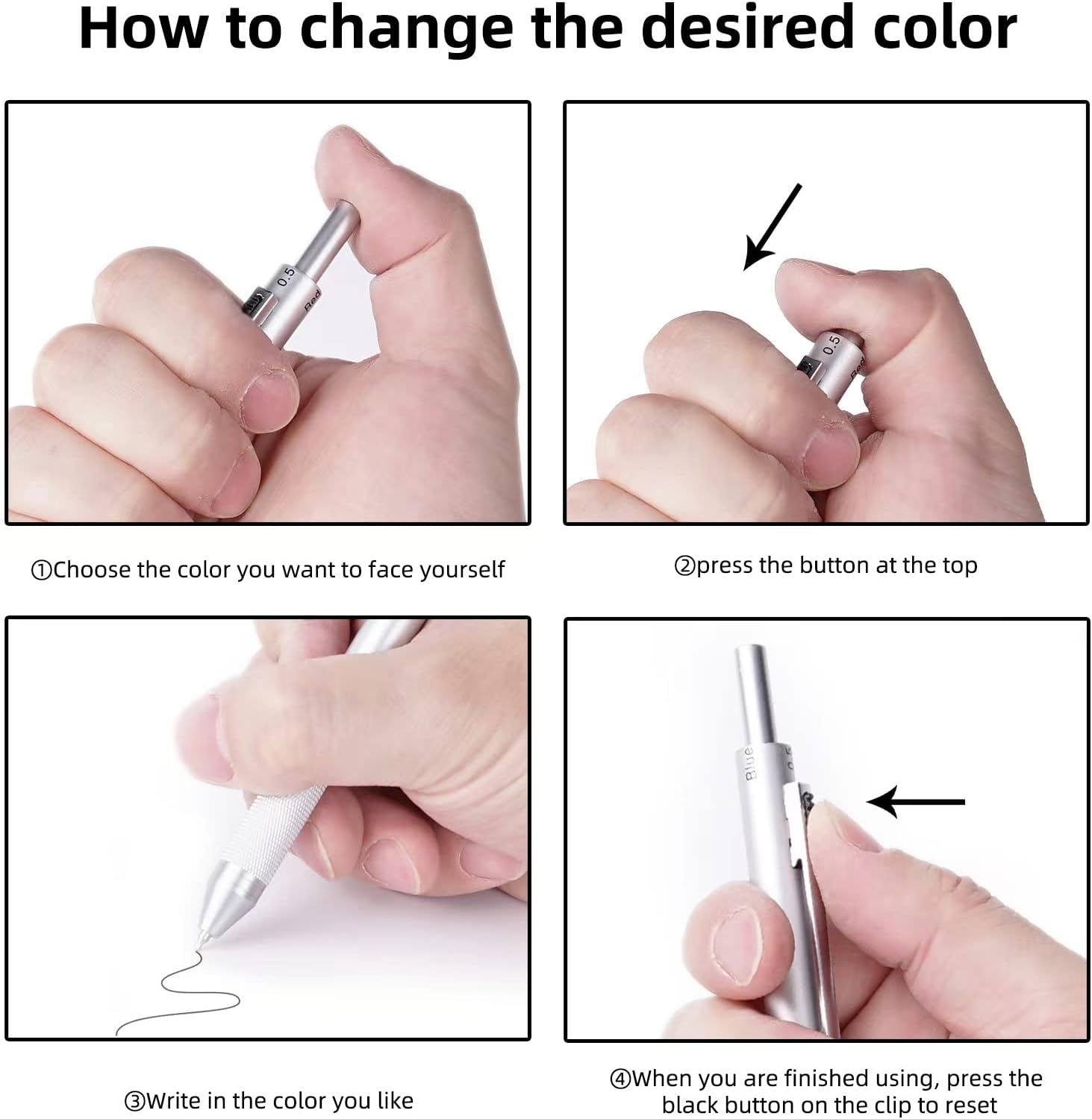 - Multifunctional pen material: The barrel is made of metal with a non-slip grip handle for easy holding. The pen holder has a jumping button to easily change different ink colors.
