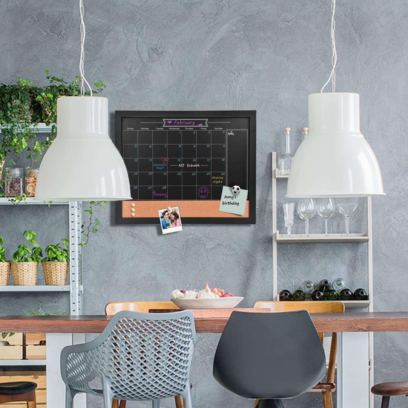 TORASO Magnetic Chalkboard Calendar Corkboard, Small Combination Chalk Board Bulletin Board, 13" x 17",Black Wood Framed Blackboard Calendar Cork Combo Board(ZHHB-BK-3343)