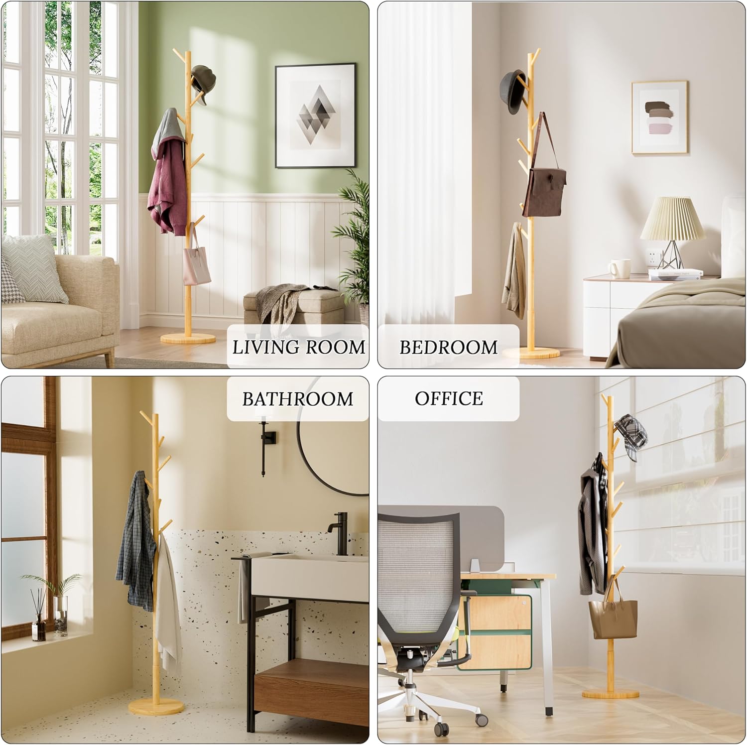 - 【QUALITY MATERIALS】: Coat tree is made of premium bamboo and wood, stable, durable, and not easily collapsing. The elegant and classic design can be perfectly integrated into various home decoration styles