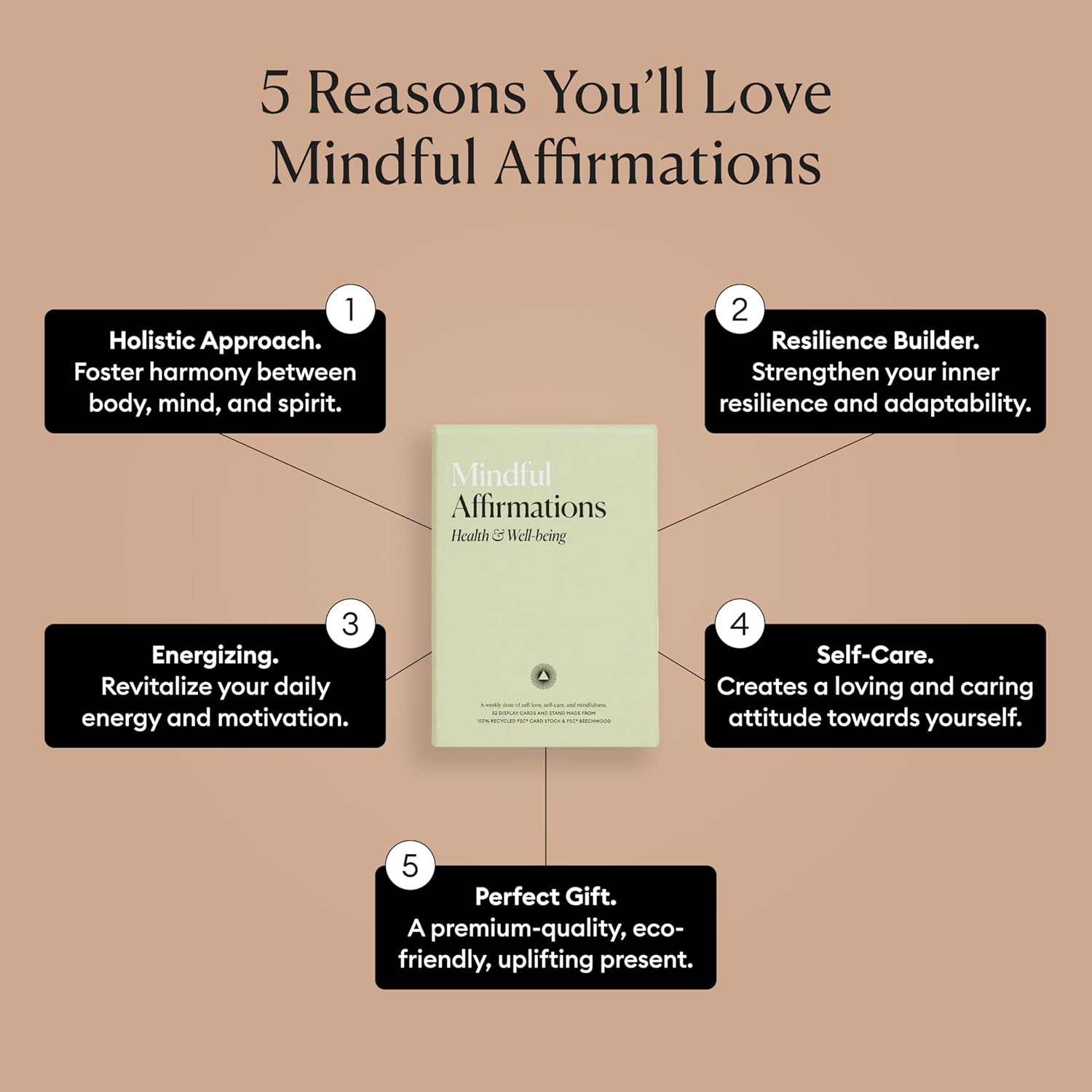 - Display Your Affirmations Cards - Every purchase includes 52 health and wellbeing cards and a display stand. Bring your affirmation deck with you wherever you go, pull out a card, place it on the stand, then recite the message to manifest all good intentions.