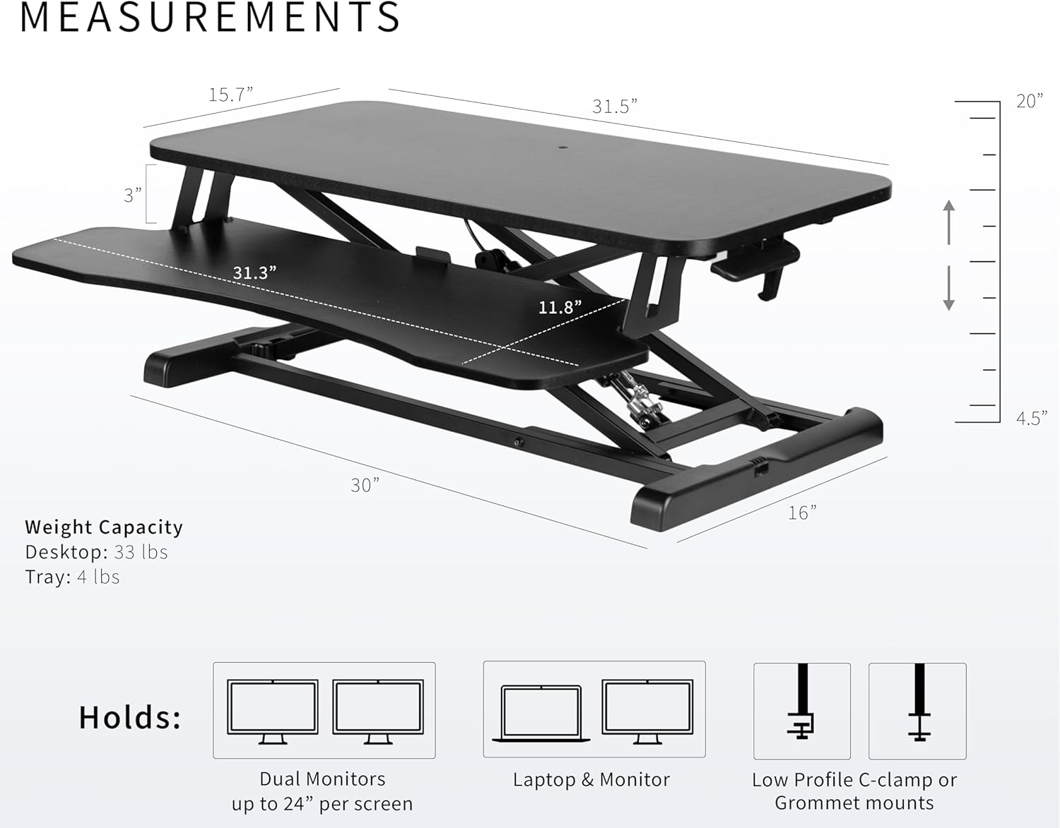 - Create Instant Active Standing: VIVO’s desk riser provides on-demand standing throughout the day for the freedom to get out of your chair and relieve muscle tension, reduce stress, and increase productivity --Patented--