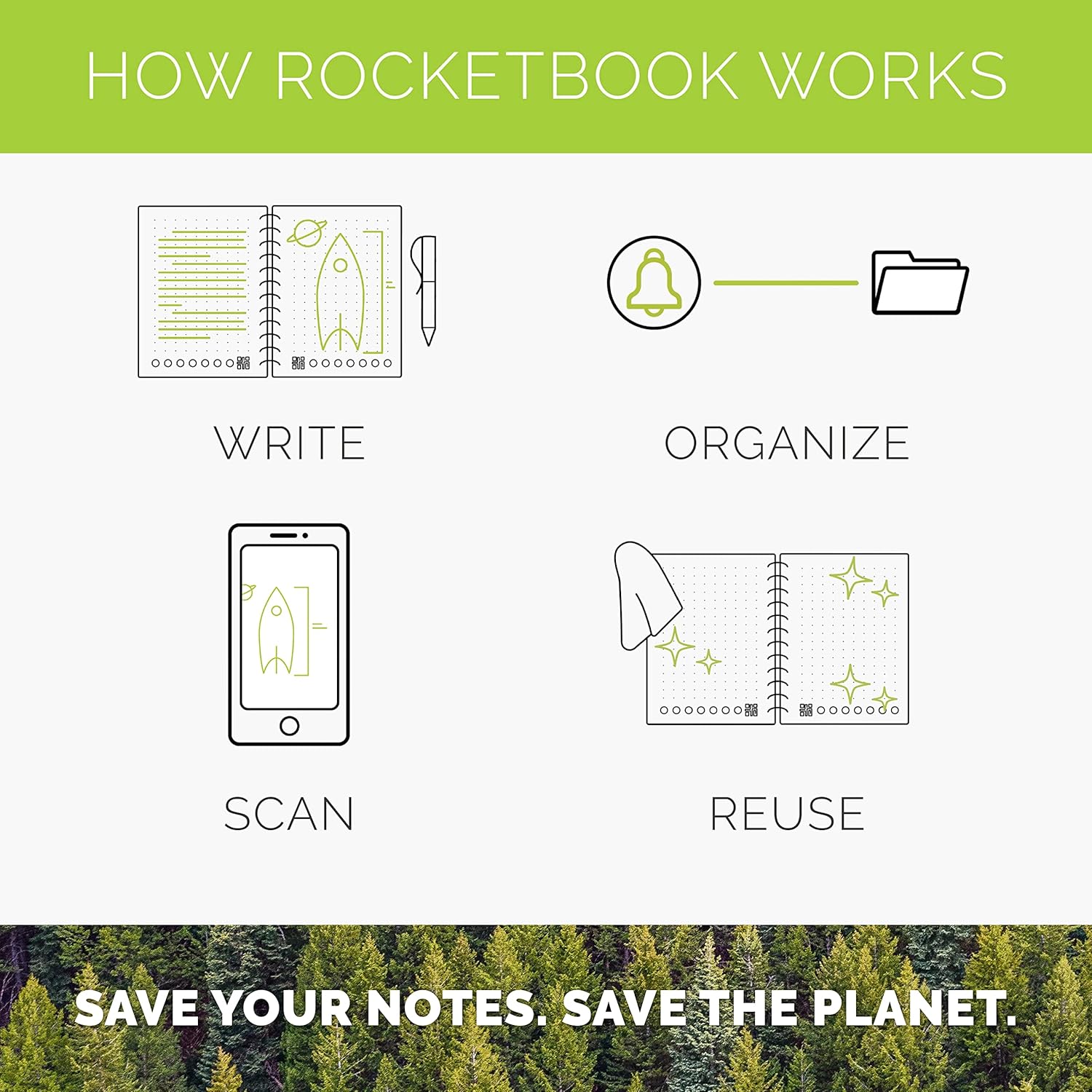 - Packaging Includes: 1 Rocketbook letter size fusion plus notebook (8.5" x 11"), 1 pilot frixion pen, and 1 microfiber cloth