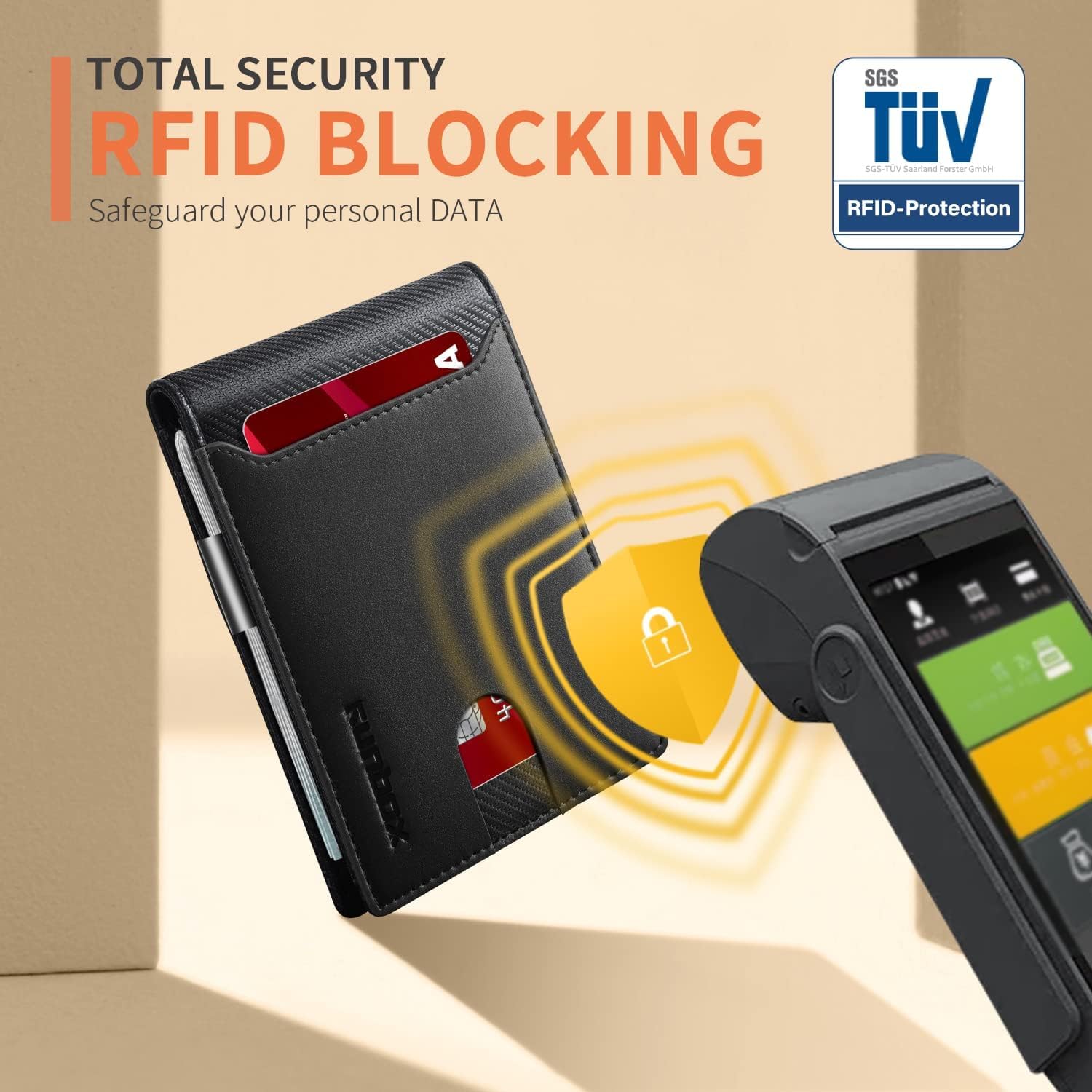 - šš šš šš§šš¢-šš”ššš šššššššš - this slim wallet for men equipped with German Instiute Certified RFID Security technology, a unique metal composite, engineered specifically to block 13.56 MHz or higher RFID signals to protect the valuable information and privacy