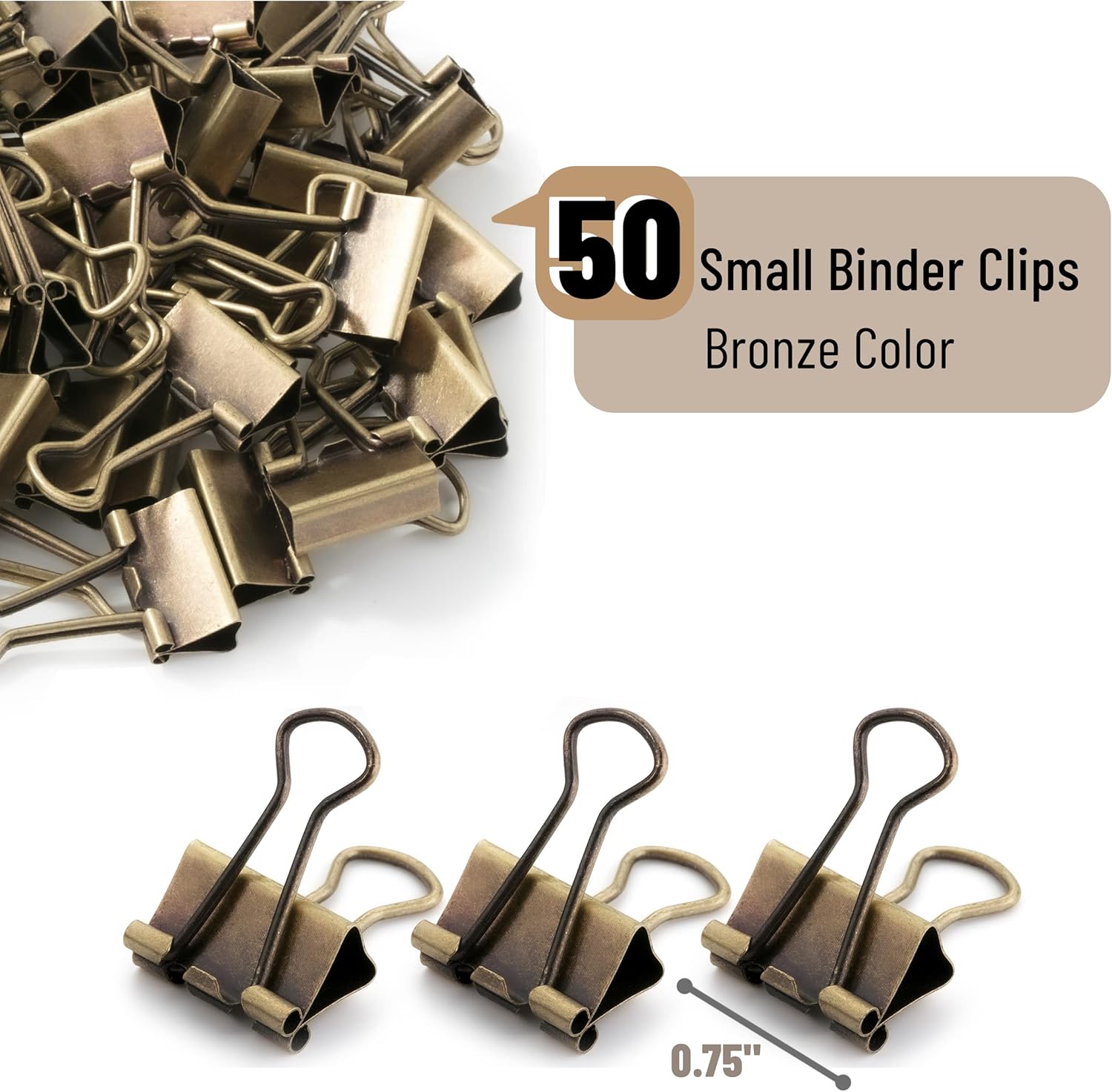 Mr. Pen - 50Pack Mini Bronze Binder Clips 0.75 in, Paper/Binder/Small Office Clips