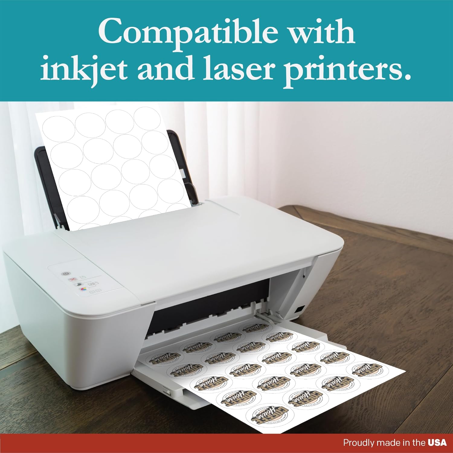 Premium Label Supply White Sticker Round Labels – 2" Circle – Laser/Inkjet Compatible – (20 per Sheet), 100 Sheets – 2,000 Total Adhesive Labels