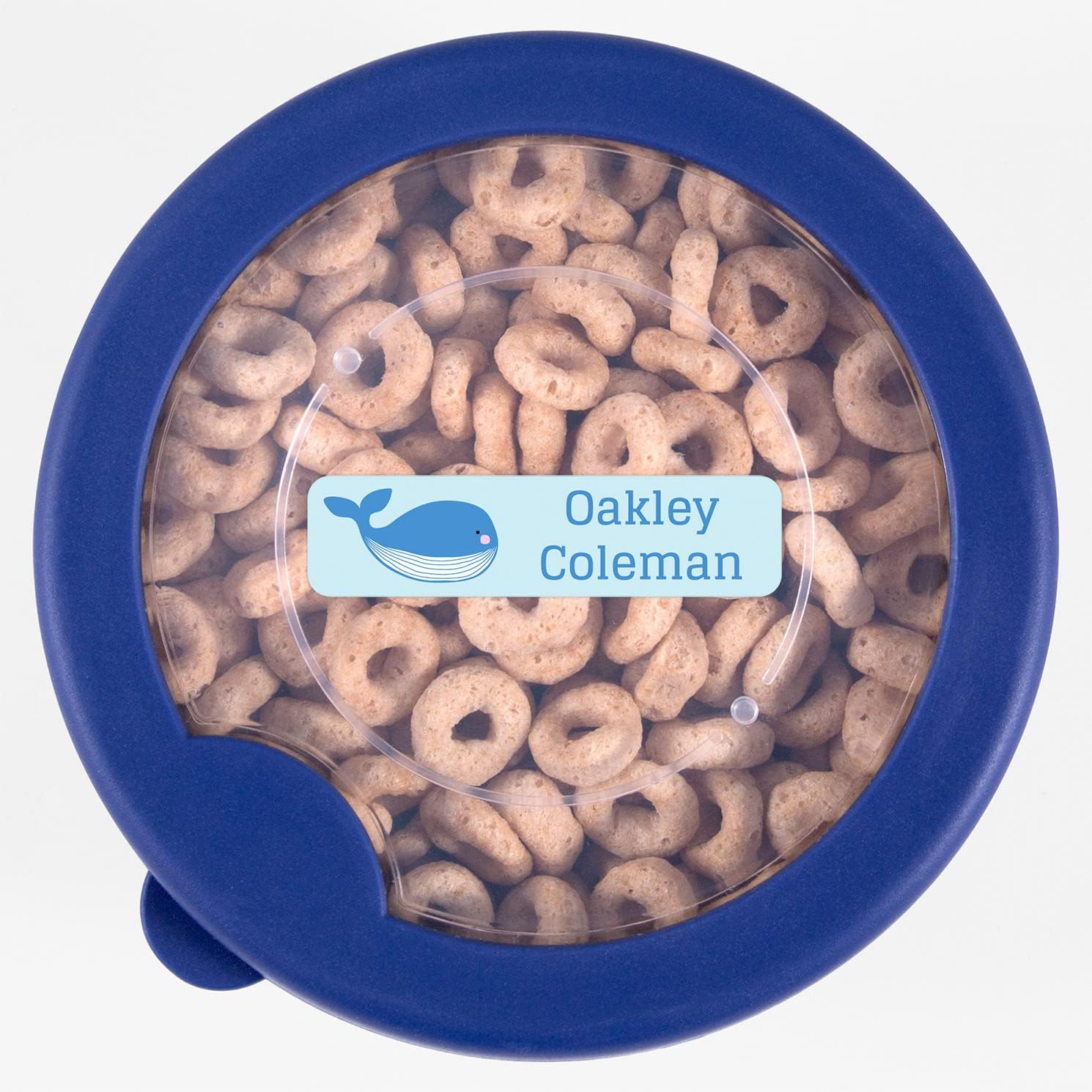 Name Bubbles - Custom Small Rectangle Name Labels for Kids (64 Labels) - Personalized Waterproof Name Stickers for Daycare, Lunch Boxes, Water Bottles, Shoes, School Supplies, & Camp (Whale)