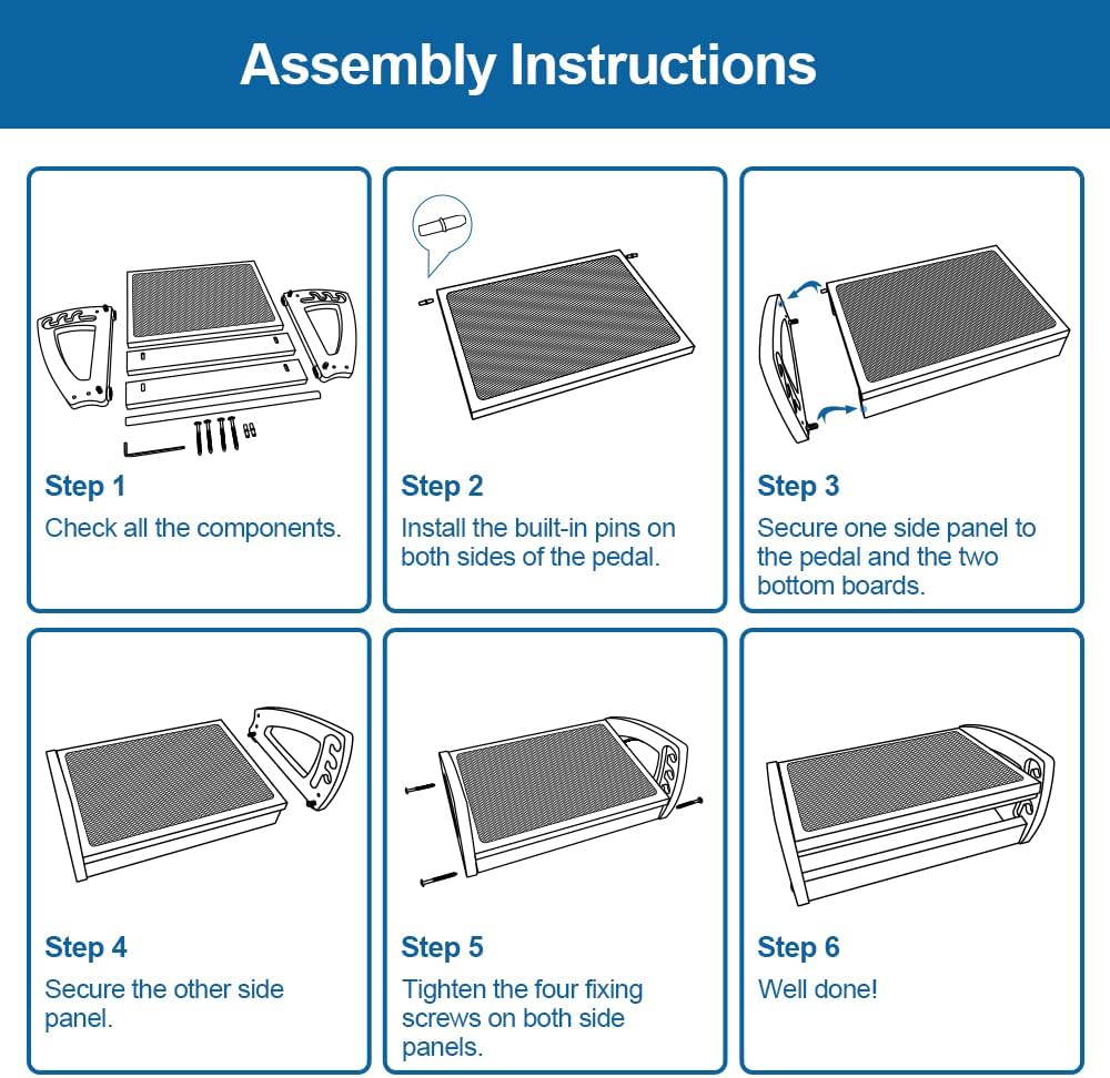 - Quick and Effortless Assembly: Assemble your under-desk foot stool swiftly in just 3-5 minutes. The package includes all necessary components and a straightforward guide, ensuring a hassle-free setup. Start enjoying the comfort and durability of your new footrest right away, without the need for extensive assembly or tools.