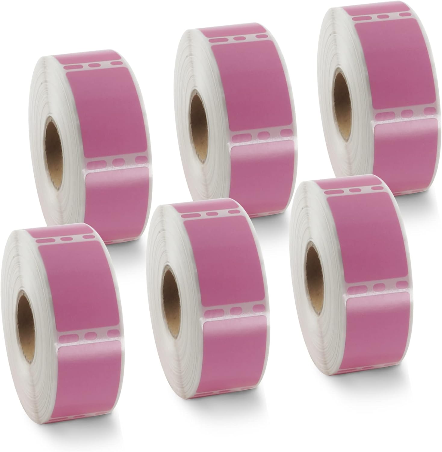BETCKEY Colored Labels Compatible with Dymo 30347 (1" x 1-1/2") Book Spine Lables, Compatible for Dymo LabelWriter Thermal 450, 4XL & Zebra Desktop Printers [6 Rolls, 4500 Labels, Pink]