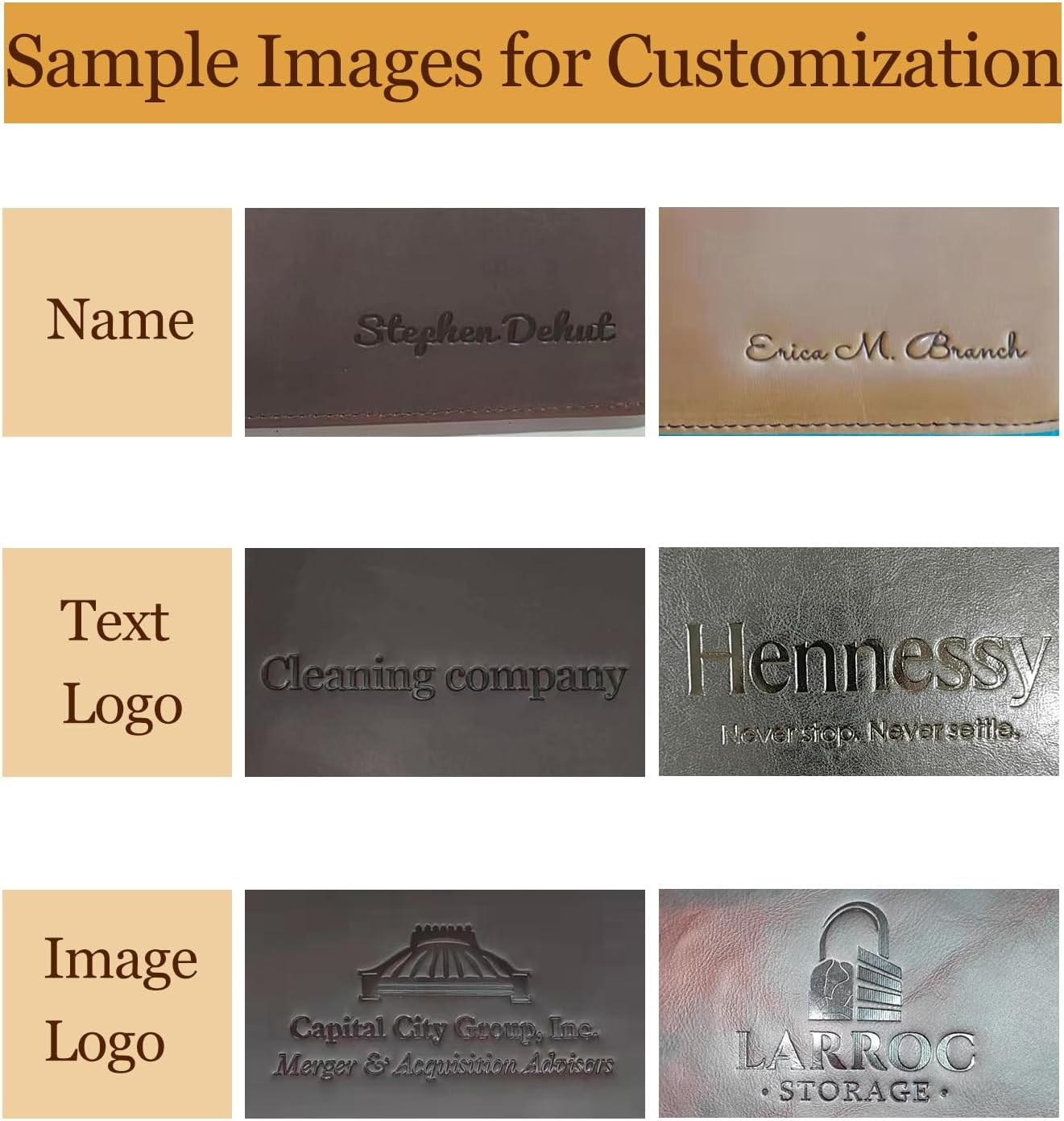- Personalized Leather Portfolio: You can customize your name, which defaults to the lower right corner, or logo, which defaults to the top middle. Simply choose your customization option and input the name or logo. If you have additional customization requirements, such as left-handed people, please feel free to contact us via email after placing an order. We will do our best to assist you.