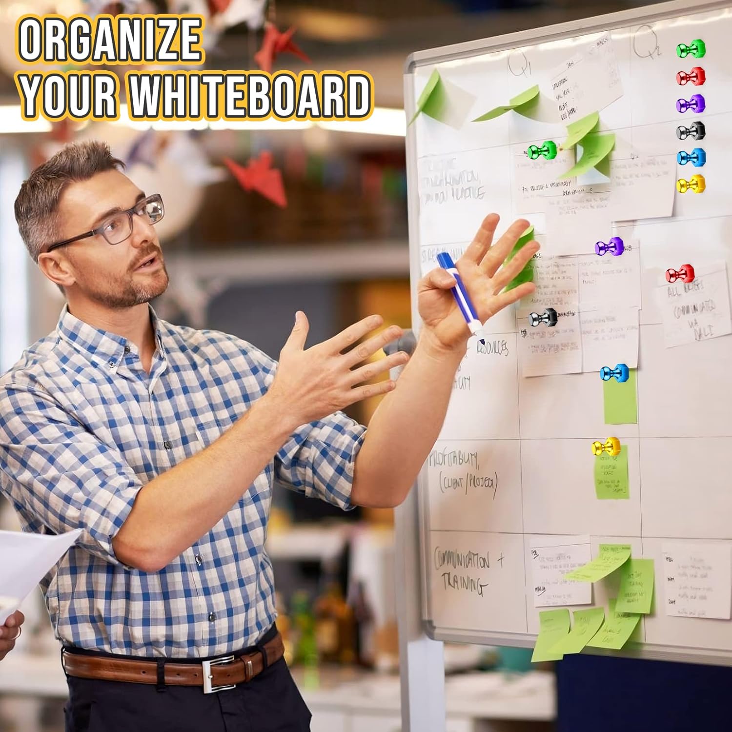 - Practical Design: These small push pin magnets are compact and lightweight, making them easy to handle and store. Their discreet size allows you to attach multiple items without cluttering your space, perfect for organizing your kitchen, office, school, or any other environment where organization is key.