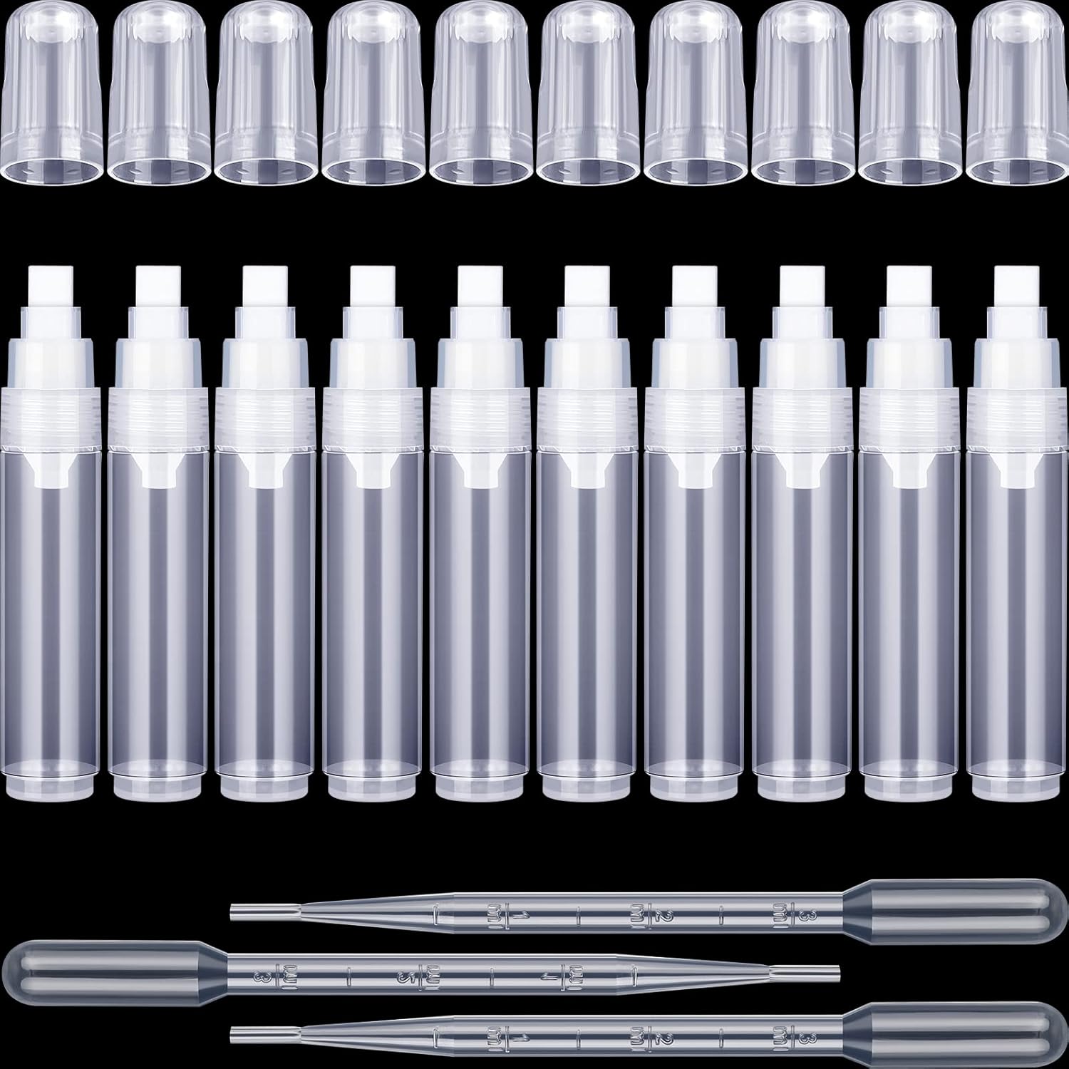 Sabary 10 Pcs Refillable Paint Markers 10 mm Empty Acrylic Markers Blank Flat Head Graffiti White Fillable Paint Pen with 5 Pcs 3 ml Dropper for Oil Water Ink Art Painting Craft Kit