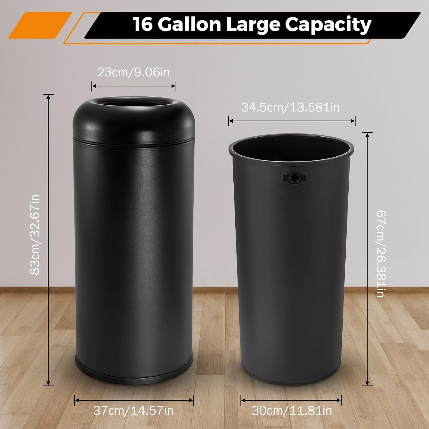 BEAMNOVA Commercial Trash Can 16.5 Gallon Open Top Outdoor Indoor Garbage Enclosure Inner with Lid Inside Barrel 14.6 * 32.7 inch Stainless Steel Industrial Waste Container