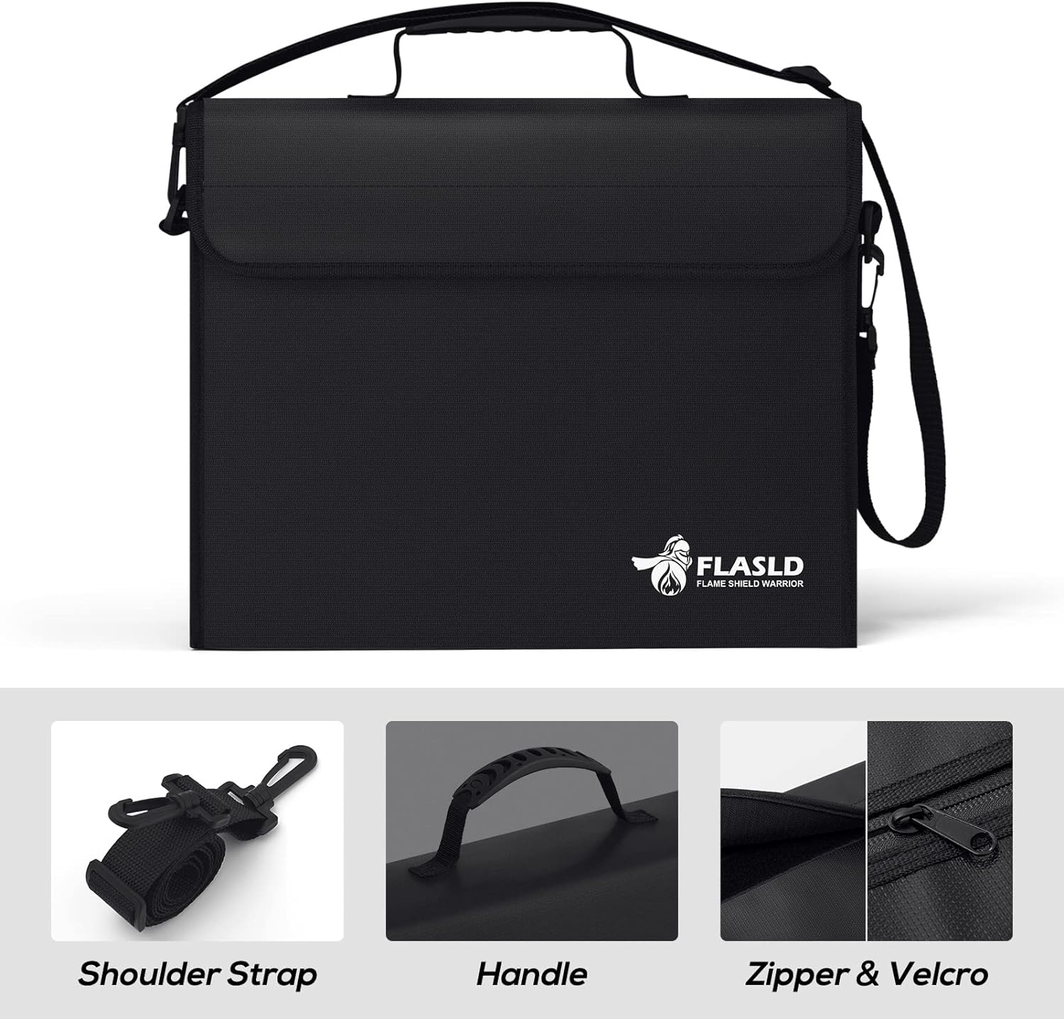 FLASLD Fireproof Document Bags, 15x12x5” Large Fireproof & Water Resistant Bag, Holder Home Office Portable Filing Storage for Valuables, Fireproof Folder FireSafe Box for Cash, Passport