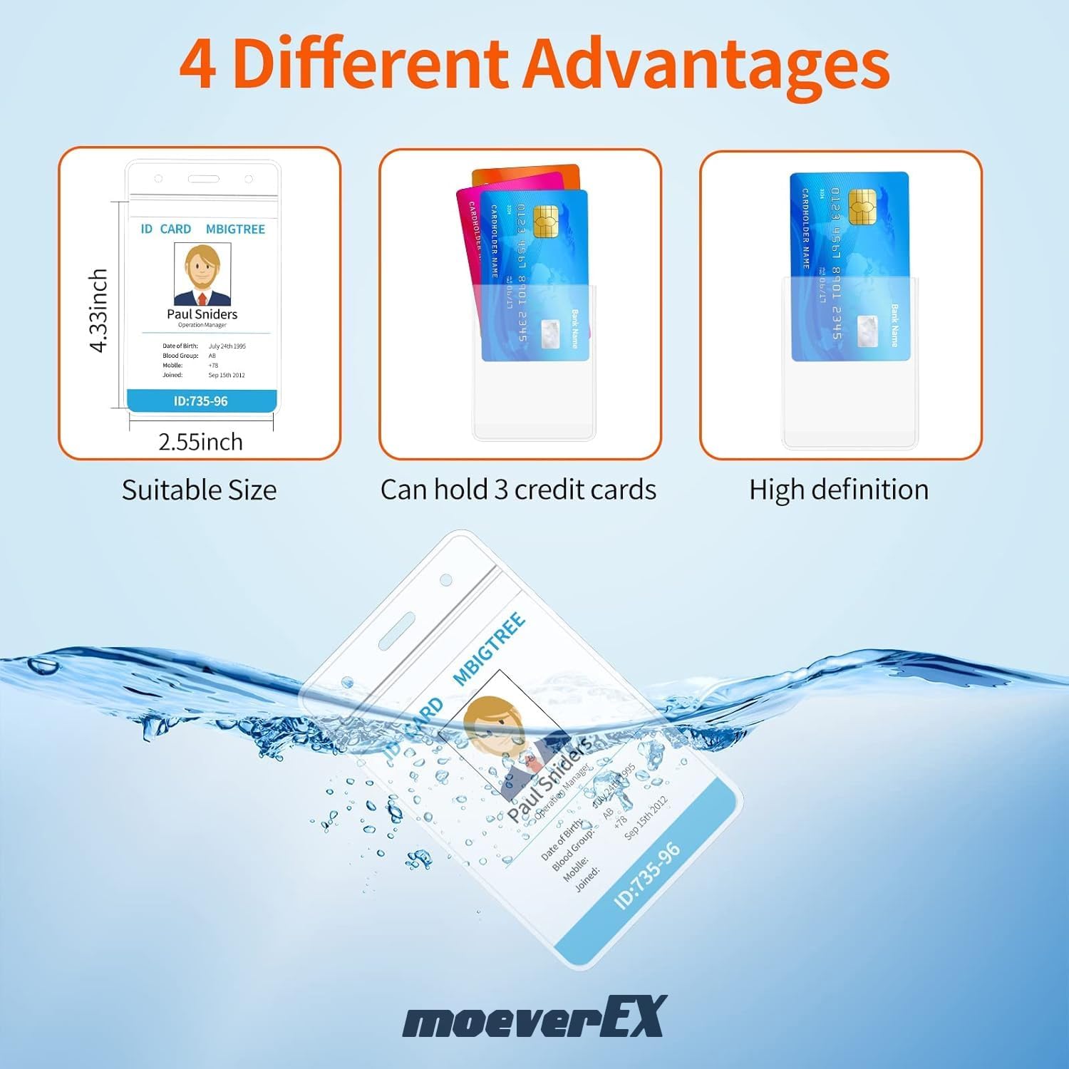 - [ID Card Holder]: This card holder can hold 3 cards, with the advantages of waterproof, high definition