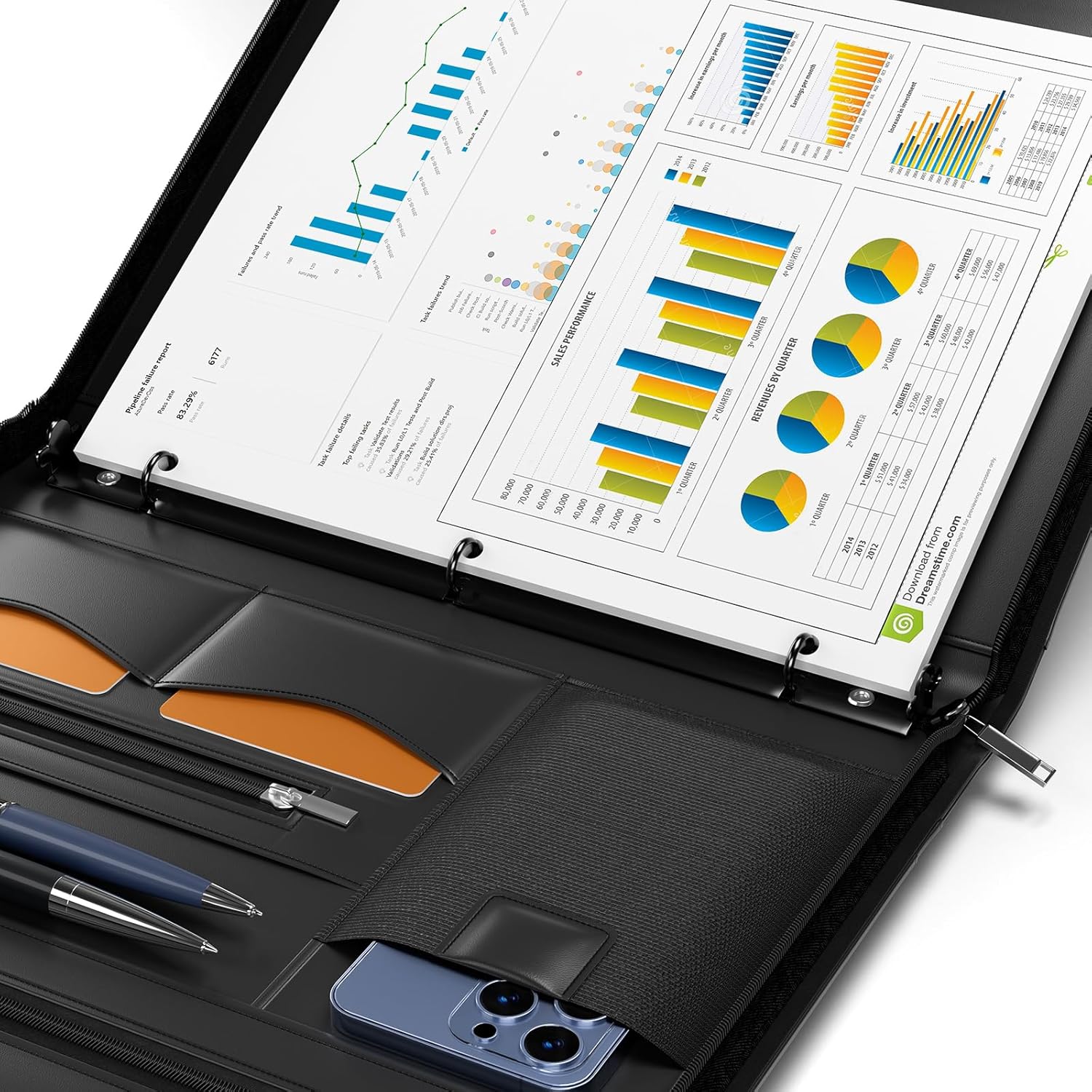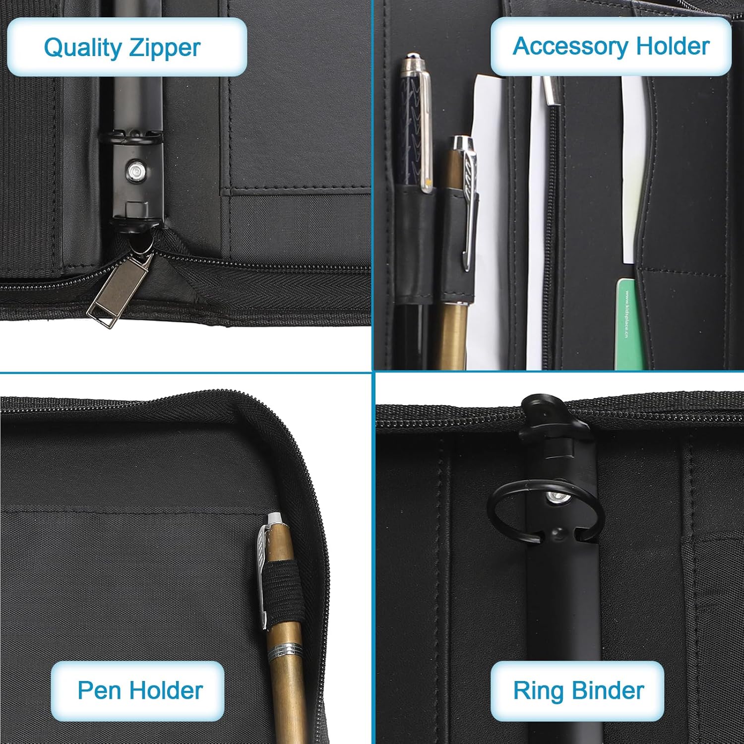 Yodo Zipper Padfolio Portfolio Binder Organizer PU Leather Portfolio for Resume, Legal Documents, Tablet, Business Supplies and Cards,3-Ring Binder with Handle, Notepad Folder for Men & Women