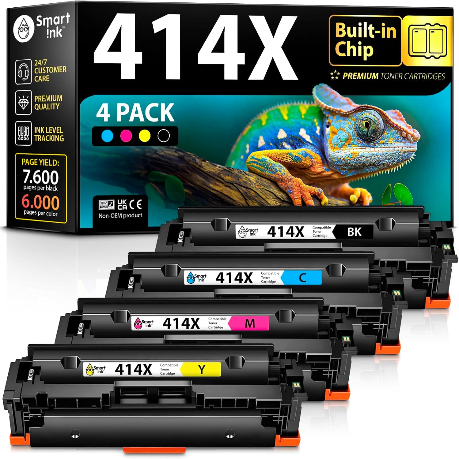 - Always the Latest Chip Version: Each Smart Ink replacement for HP toner 414X is equipped with the most up-to-date chip version and Smart Ink 414X toner cartridges 4 pack works with all compatible printers, including those with the latest firmware