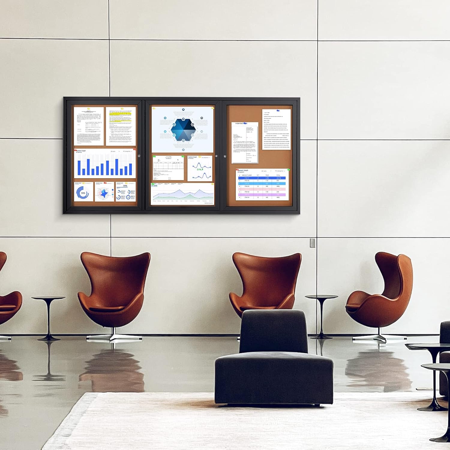 Enclosed Bulletin Board Outdoor Noticeboard with Locking Door, Weather-Resistant, Cork, Black Aluminum Frame, 70 x 36 in