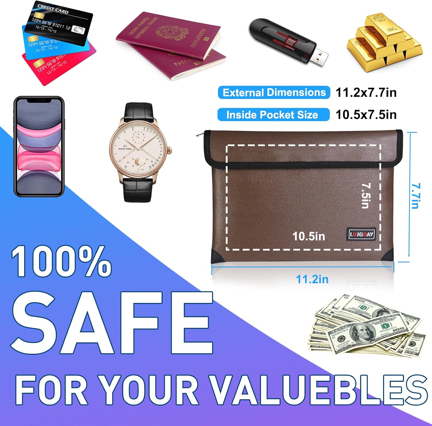 - Recommended Uses For Product : Camping, Documents and files storage, Heat Insulated, Jewelry, Laptop,Tablet, Money and documents Organizer, Passports, Travel, Valuables storage, cash holder, certification Camping, Documents and files storage, Heat Insulated, Jewelry, Laptop,Tablet, Money and documents Organizer, Passports, Travel, Valuables storage, cash holder, certification