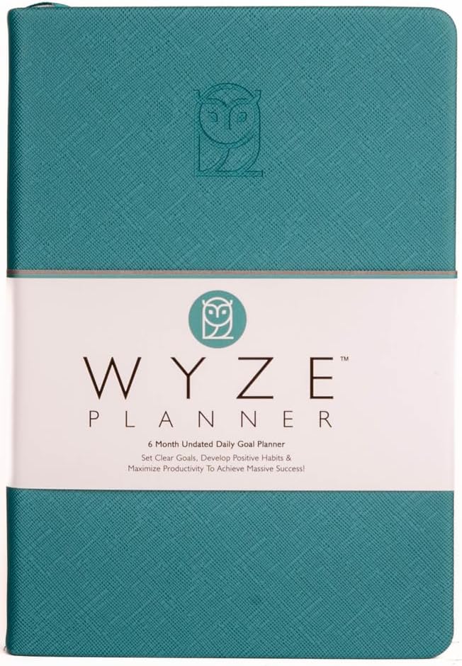 Undated Daily Planner – 6-Month A5 Productivity Organizer with Full Page Per Day, Hourly Schedule, Goal Setting, Habit Tracker, Weekly & Monthly Pages – Hardcover Time Management Notebook (Turquoise)