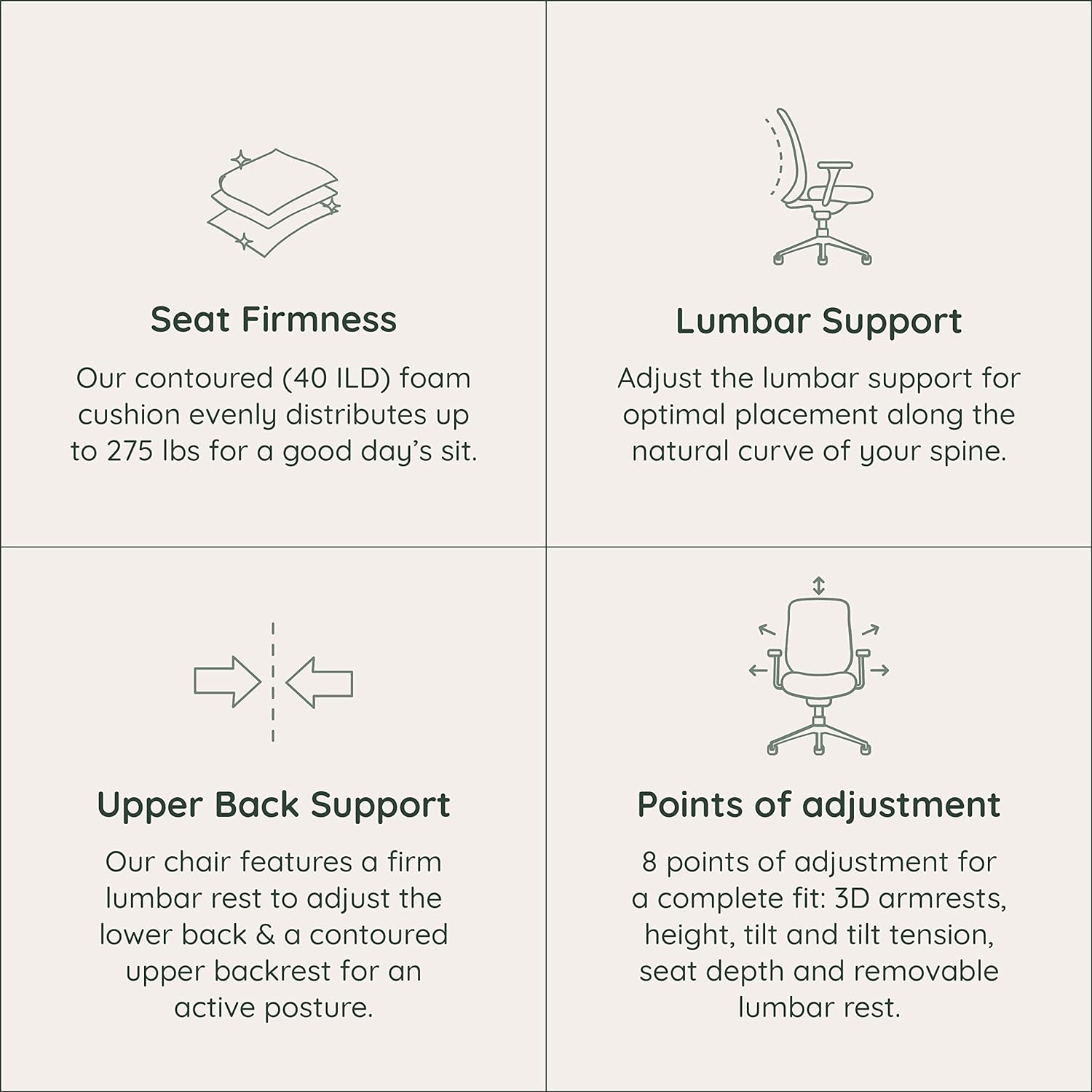 - MODERN STYLE: Elevate your workspace with the Ergonomic Chair, featuring a sleek, minimalist design that combines form and function. Enjoy superior support with contoured cushioning and eight points of adjustment.